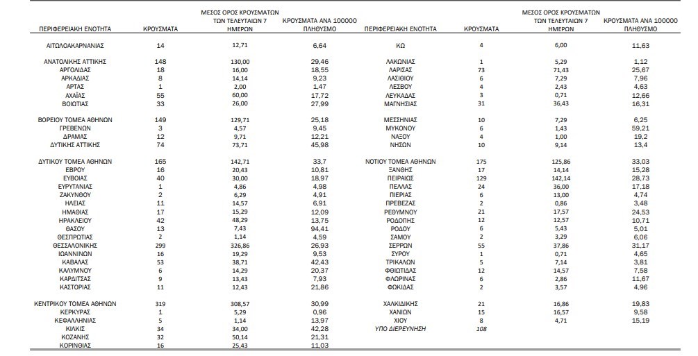 Αναλυτικά: τα κρούσματα στις περιφερειακές ενότητες που ανήκουν στην Αττική: