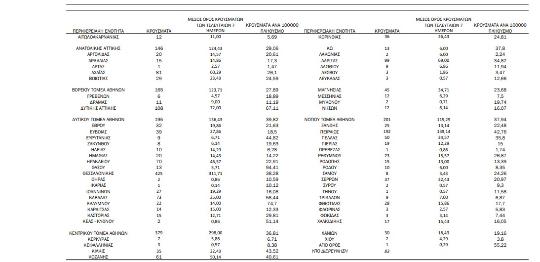 Αναλυτικά τα κρούσματα στις περιφερειακές ενότητες που ανήκουν στην Αττική: