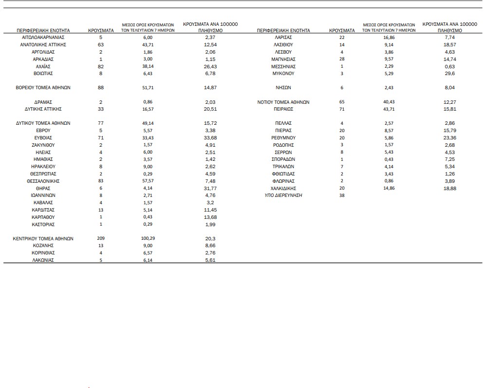 Στην Ανατολική Αττική υπήρξαν 63 νέες μολύνσεις, στον Βόρειο Τομέα Αθηνών 88, στις Νήσους 6, στον Νότιο Τομέα 65 και στον Πειραιά 71.