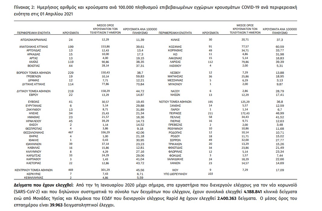 Δείτε ΕΔΩ την ημερήσια έκθεση επιδημιολογικής επιτήρησης λοίμωξης από τον κορονοϊό