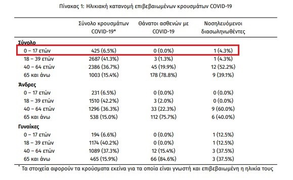 Συνεχίζεται η αύξηση των κρουσμάτων κορονοϊού στη χώρα μας, καθώς ο ΕΟΔΥ ανακοίνωσε σήμερα, ανήμερα του Δεκαπενταύγουστου, 230 νέα κρούσματα, ενώ 23 συμπολίτες μας (65.2% άνδρες) νοσηλεύονται διασωληνωμένοι. Όπως προκύπτει, από τα επιδημιολογικά στοιχεία του ΕΟΔΥ, ανάμεσα στους διασωληνωμένους είναι και μία ανήλικη, χωρίς όμως να έχει γίνει γνωστή η ηλικία της.