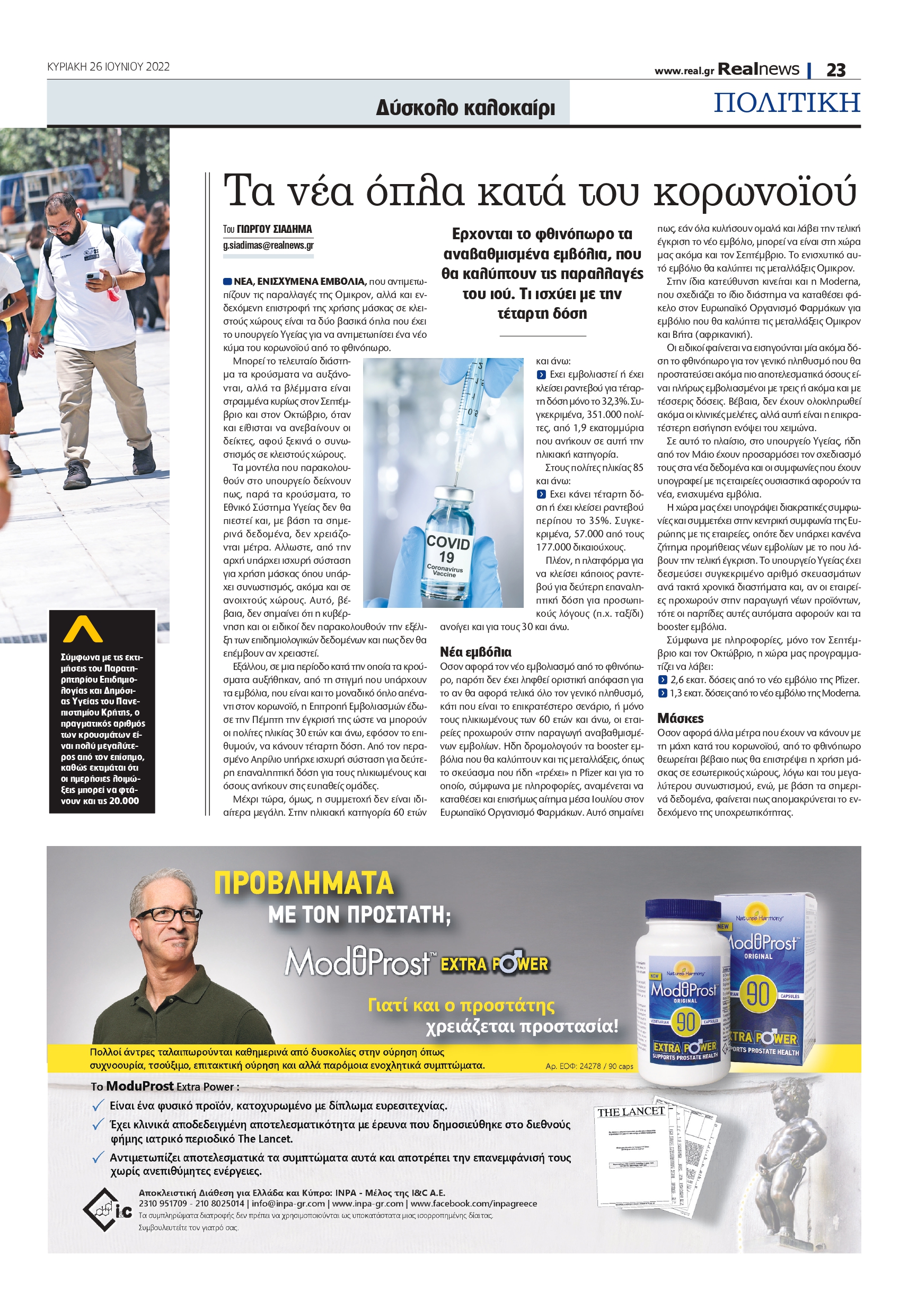 Αυτό, βέβαια, δεν σημαίνει ότι η κυβέρνηση και οι ειδικοί δεν παρακολουθούν την εξέλιξη των επιδημιολογικών δεδομένων και πως δεν θα επέμβουν αν χρειαστεί. Εξάλλου, σε μια περίοδο κατά την οποία τα κρούσματα αυξήθηκαν, από τη στιγμή που υπάρχουν τα εμβόλια, που είναι και το μοναδικό όπλο απέναντι στον κορωνοϊό, η Επιτροπή Εμβολιασμών έδωσε την Πέμπτη την έγκρισή της ώστε να μπορούν οι πολίτες ηλικίας 30 ετών και άνω, εφόσον το επιθυμούν, να κάνουν τέταρτη δόση. Από τον περασμένο Απρίλιο υπήρχε ισχυρή σύσταση για δεύτερη επαναληπτική δόση για τους ηλικιωμένους και όσους ανήκουν στις ευπαθείς ομάδες.