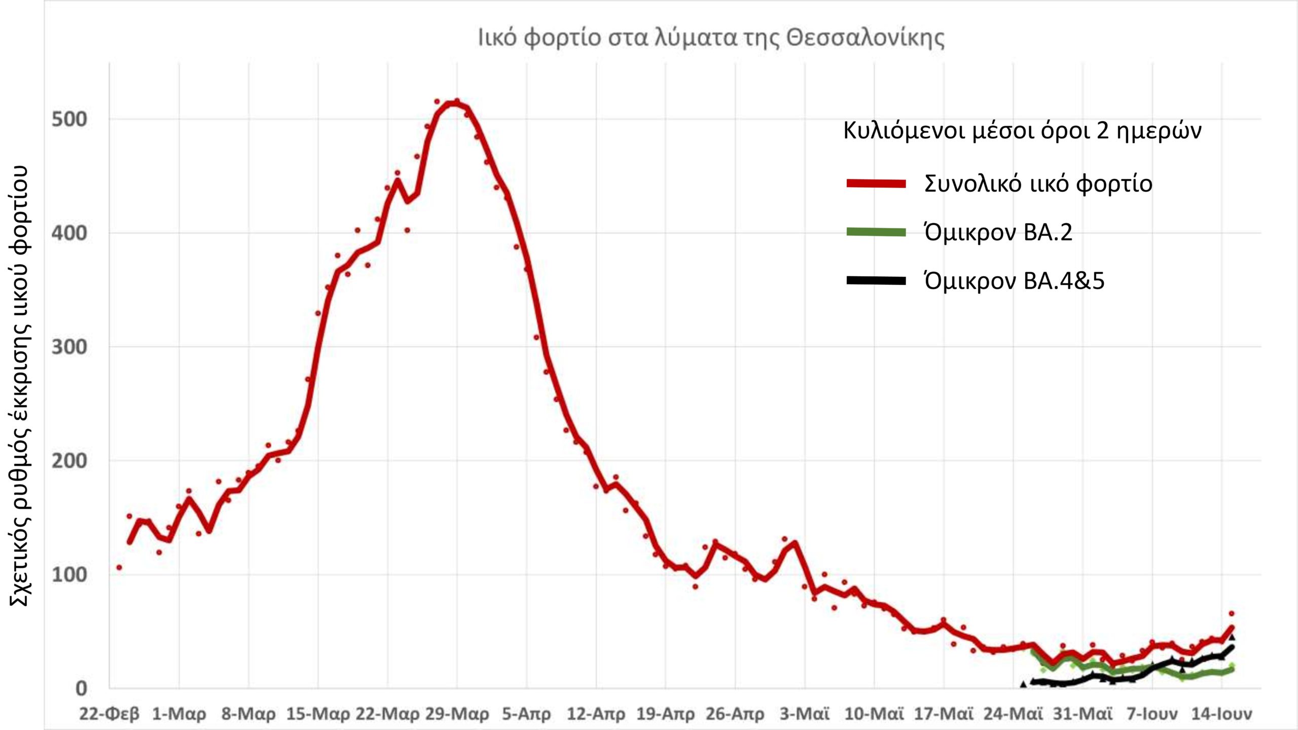 Σχετικά με την ανάδυση των στελεχών Όμικρον ΒΑ.4 και ΒΑ.5 ο αναπληρωτής καθηγητής Μοριακής Μικροβιολογίας του Τμήματος Κτηνιατρικής του ΑΠΘ, Χρυσόστομος Δόβας, εξήγησε: «Οι αναλύσεις μας διενεργήθηκαν με δύο νέες μεθόδους που αναπτύξαμε για την αποκλειστική ενίσχυση και ποσοτικοποίηση των στελεχών Όμικρον ΒΑ.2 και ΒΑ.4&5 αντίστοιχα, οι οποίες βασίζονται σε μια απάλειψη “υπογραφή” στο γονίδιο της ακίδας του ιού. Τα δεδομένα καταδεικνύουν την ανάδυση των στελεχών ΒΑ.4&5 στην πόλη μετά τα μέσα Μαΐου, ενώ με βάση τις πρόσφατες μετρήσεις 22 ημερών υπολογίζεται ένας ρυθμός διπλασιασμού του ιικού τους φορτίου ανά 7 ημέρες. Στο δείγμα της 15ης Ιουνίου το ποσοστό των ΒΑ.4&5 ήταν 69% επί του συνολικού φορτίου.»