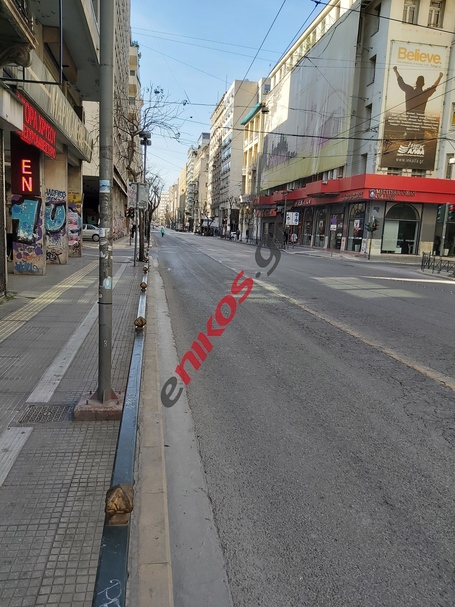 Έρημη πόλη μετά τα μέτρα που έλαβε η Κυβέρνηση στην προσπάθεια της να καταπολεμήσει τον κορονοϊό, θυμίζει η Αθήνα και το κέντρο της πρωτεύουσας, όπως φαίνεται και στις φωτογραφίες που μας έστειλε αναγνώστης του enikos.gr.