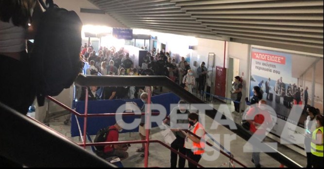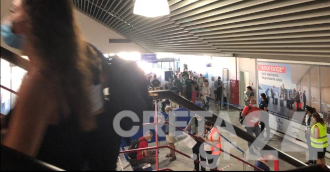 Στον χώρο των αφίξεων οι επιβάτες περνούν από τον σχετικό έλεγχο και επιδεικνύουν το QR code, ενώ με τη χρήση ενός «έξυπνου» αλγορίθμου, υπολογίζεται ποιοι έχουν υψηλότερες πιθανότητες να είναι φορείς του κορονοϊού και οδηγούνται στον ειδικό χώρο όπου υποβάλλονται σε τεστ. Oι εικόνες αποτυπώνουν εκτός από τη διαδικασία που ακολουθείται στο «Νίκος Καζαντζάκης» και συνωστισμό, ωστόσο ήδη ο αερολιμενάρχης Ηρακλείου Γιώργος Πλιάκας έχει ζητήσει να αυξηθούν τόσο οι χώροι ελέγχων αλλά και τα σημεία όπου γίνεται η δειγματοληψία. Ο αερολιμενάρχης από την πρώτη κιόλας πτήση εντόπισε τη δυσλειτουργία στον έλεγχο των QR CODE, καθώς αν αυξηθούν τις επόμενες μέρες οι πτήσεις θα δημιουργηθούν μεγαλύτερες ουρές και άρα καθυστερήσεις.