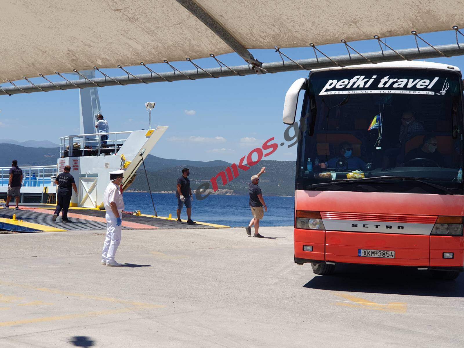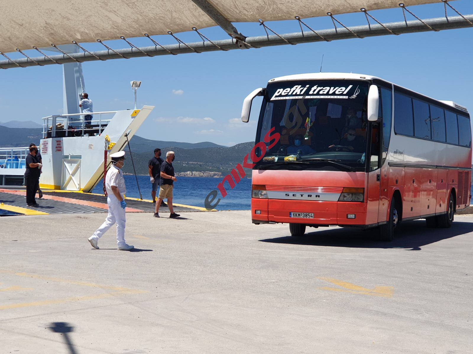 Οι Σέρβοι τουρίστες μεταφέρθηκαν με πούλμαν, όπως φαίνεται στις φωτογραφίες που μας έστειλε αναγνώστης του enikos.gr, στο λιμάνι του Αγιόκαμπου και από κει με ειδικό δρομολόγιο θα ξεκινήσει η διαδικασία επαναπατρισμού τους.
