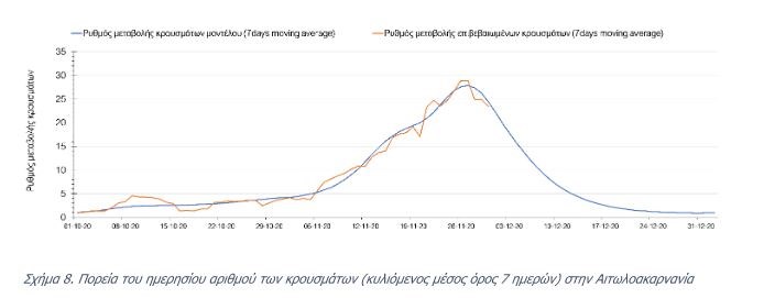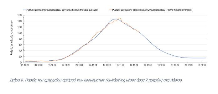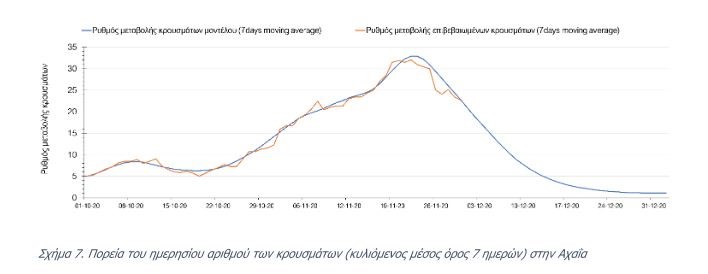 Την Τρίτη, σε αντίθεση με τις προηγούμενες ημέρες, στις επιμέρους περιοχές με υψηλό υγειονομικό κίνδυνο, οι πτωτικές τάσεις στον αριθμό επιβεβαιωμένων κρουσμάτων επιβεβαιώνονται μόνο για στην Αχαΐα ( Σχήμα 7 ) και τη Λάρισα ( Σχήμα 6 ), ενώ στην Αθήνα ( Σχήμα 4 ), τη Θεσσαλονίκη ( Σχήμα 5 ), και την Αιτωλοακαρνανία ( Σχήμα 8 ) η πορεία δεν ήταν η αναμενόμενη.