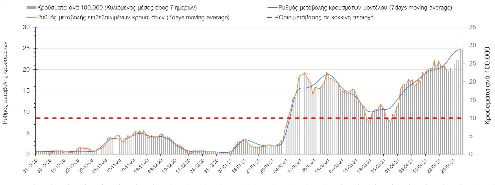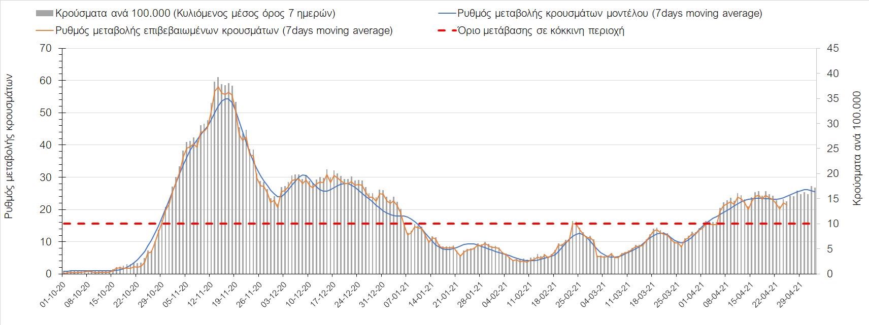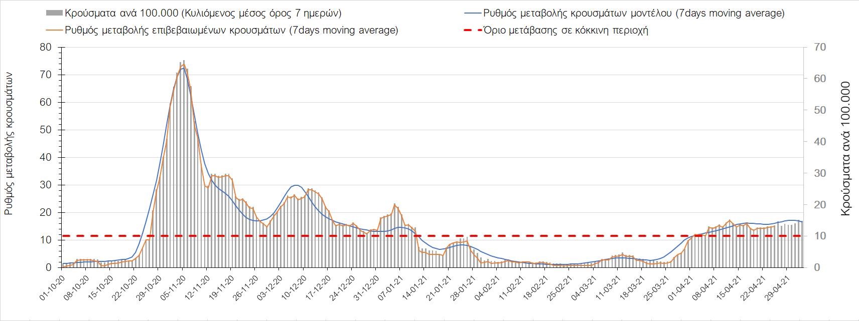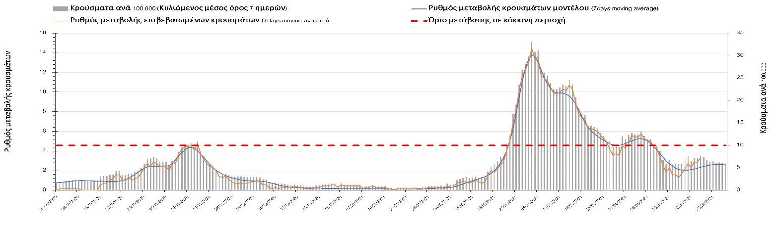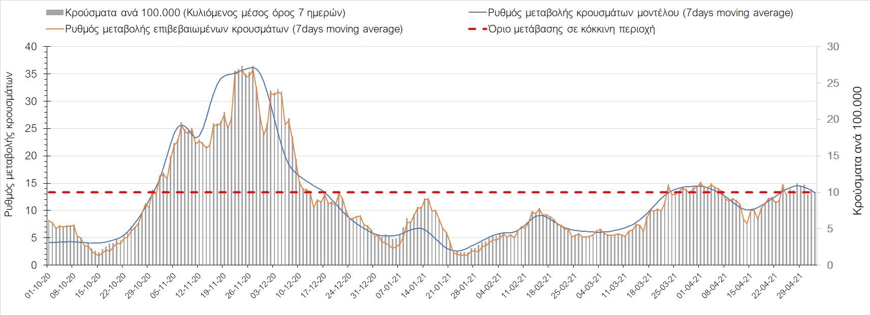 Παρά την εφαρμογή οριζόντιων μέτρων ανάσχεσης της πανδημίας που εφαρμόσθηκαν από τα τέλη Οκτωβρίου, η πορεία της τελευταίας διαφοροποιείται από περιοχή σε περιοχή. Οι παραπάνω παρατηρήσεις τείνουν στο συμπέρασμα ότι η διαχείριση του υγειονομικού κινδύνου θα πρέπει να συνεχίσει να εξετάζεται σε τοπικό επίπεδο. Πλέον προβληματίζουν πέρα από την Αττική και τη Θεσσαλονίκη, η Αχαΐα, η Αρκαδία, η Ηλεία, η Αργολίδα, η Κορινθία, η Εύβοια, η Βοιωτία, η Λάρισα, η Μαγνησία, τα Ιωάννινα, η Κοζάνη, η Χαλκιδική, η Καστοριά, η Καβάλα, η Πέλλα, οι Σέρρες και η Πέλλα, η Ξάνθη, η Θάσος, το Ηράκλειο, τα Χανιά, και το Ρέθυμνο. Ανάγκη αυξημένης επιτήρησης έχουν η Φθιώτιδα, η Ευρυτανία, η Καρδίτσα, τα Τρίκαλα, η Πιερία, η Δράμα, η Φλώρινα, το Κιλκίς, τα Γρεβενά, η Ημαθία, η Ροδόπη, ο Έβρος και το Λασίθι, που έχουν διακυμάνσεις κοντά στο όριο της κόκκινης περιοχής.