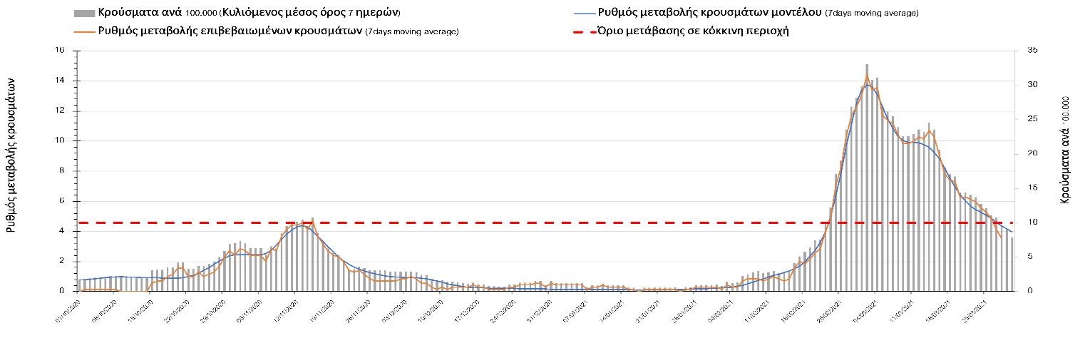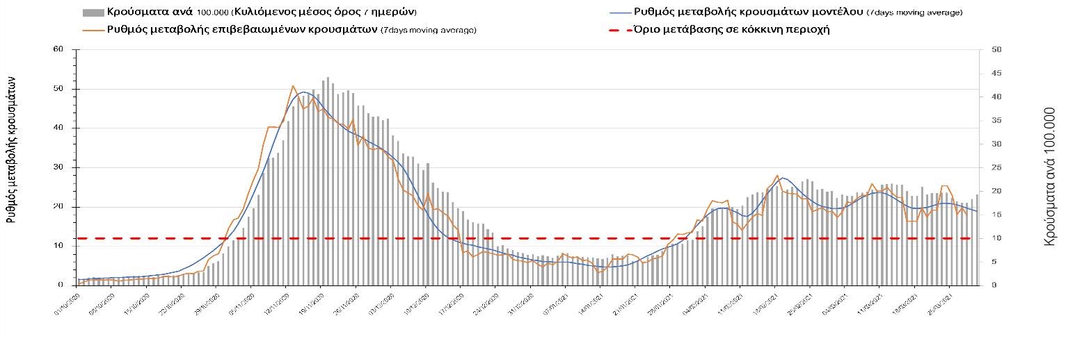 Παρά την εφαρμογή οριζόντιων μέτρων ανάσχεσης της πανδημίας που εφαρμόσθηκαν από τα τέλη Οκτωβρίου, η πορεία της τελευταίας διαφοροποιείται από περιοχή σε περιοχή. Οι παραπάνω παρατηρήσεις τείνουν στο συμπέρασμα ότι η διαχείριση του υγειονομικού κινδύνου θα πρέπει να εξεταστεί σε τοπικό επίπεδο. Πλέον προβληματίζουν πέρα από την Αττική και τη Θεσσαλονίκη, η Αχαΐα, η Αιτωλοακαρνανία, η Εύβοια, η Βοιωτία, η Χαλκιδική, καθώς επίσης η Αρκαδία, η Ηλεία, η Αργολίδα, η Κορινιθία, η Φθιώτιδα, η Ευρυτανία, η Λάρισα, η Κοζάνη, η Καστοριά, η Καβάλα, η Χίος, το Ηράκλειο, τα Χανιά, τα Ιωάννινα, η Ημαθία, η Πέλλα, το Κιλκίς, τα Γρεβενά, η Μαγνησία και η Καρδίτσα. Ανάγκη αυξημένης επιτήρησης έχουν και τα Τρίκαλα, η Θεσπρωτία (η οποία όμως περιμένουμε να βγει από τις κόκκινες περιοχές μέχρι το τέλος του μήνα), και οι Σέρρες,