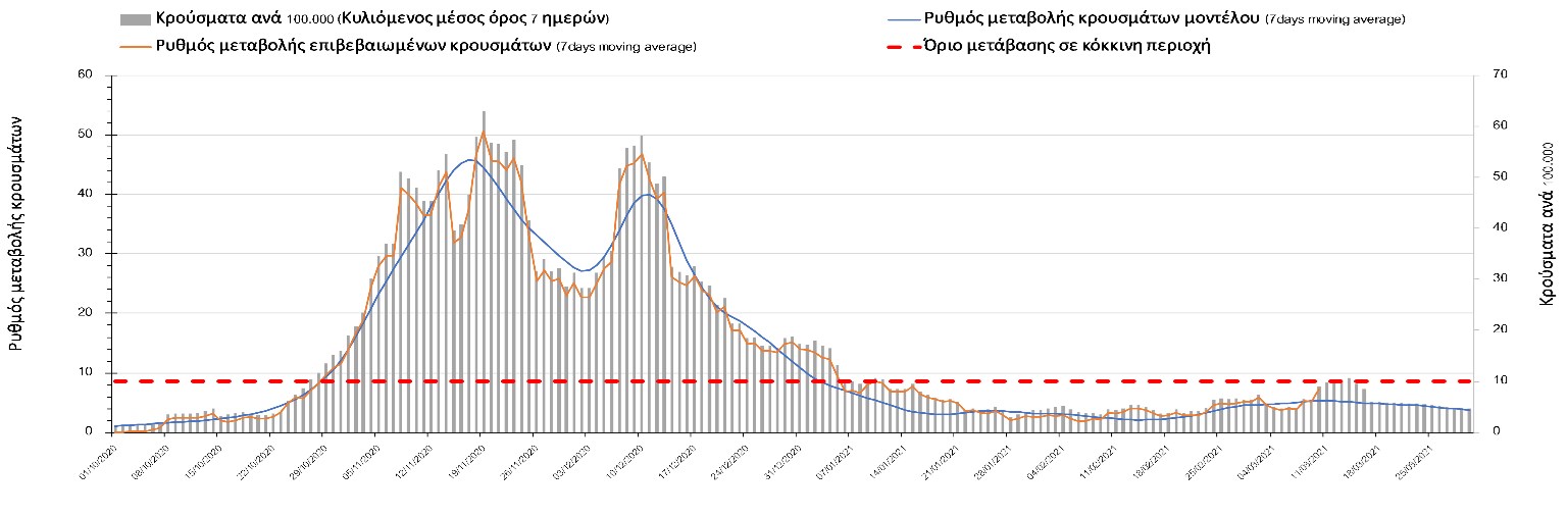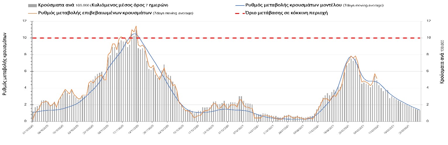 Η πορεία της καμπύλης διασποράς του ιού συνεχίζει να είναι αυξητική και η Λάρισα να χαρακτηρίζεται ως κόκκινη περιοχή, ενώ αναμένουμε να ξεκινήσει αποκλιμάκωση τις επόμενες 4-5 μέρες.