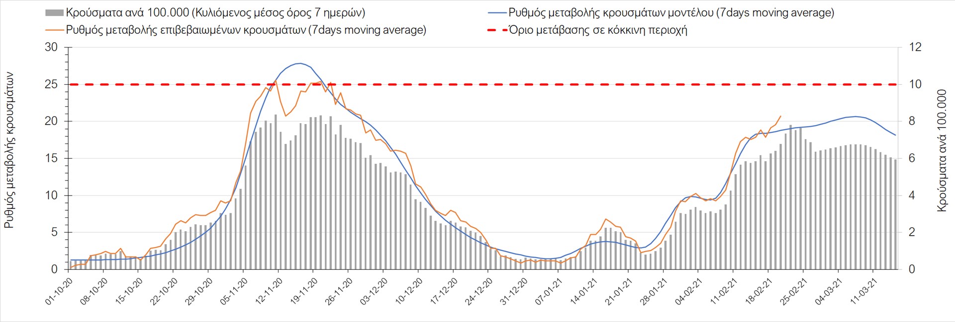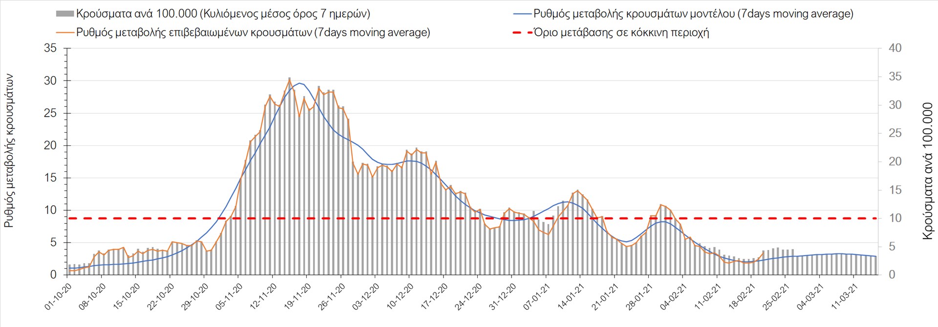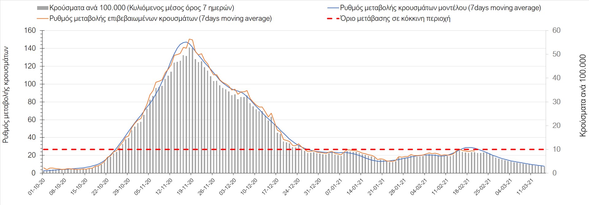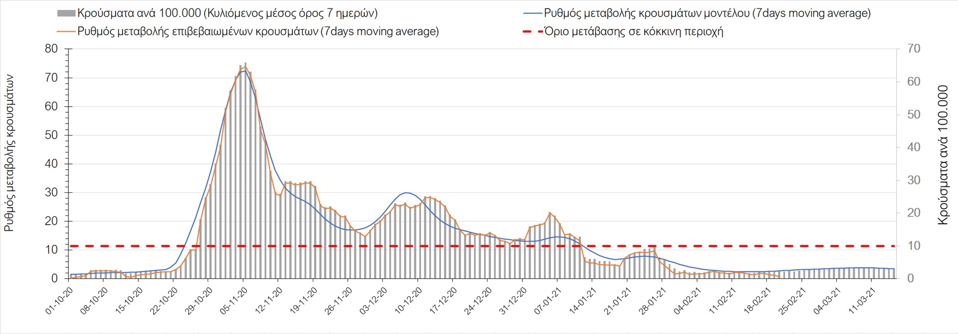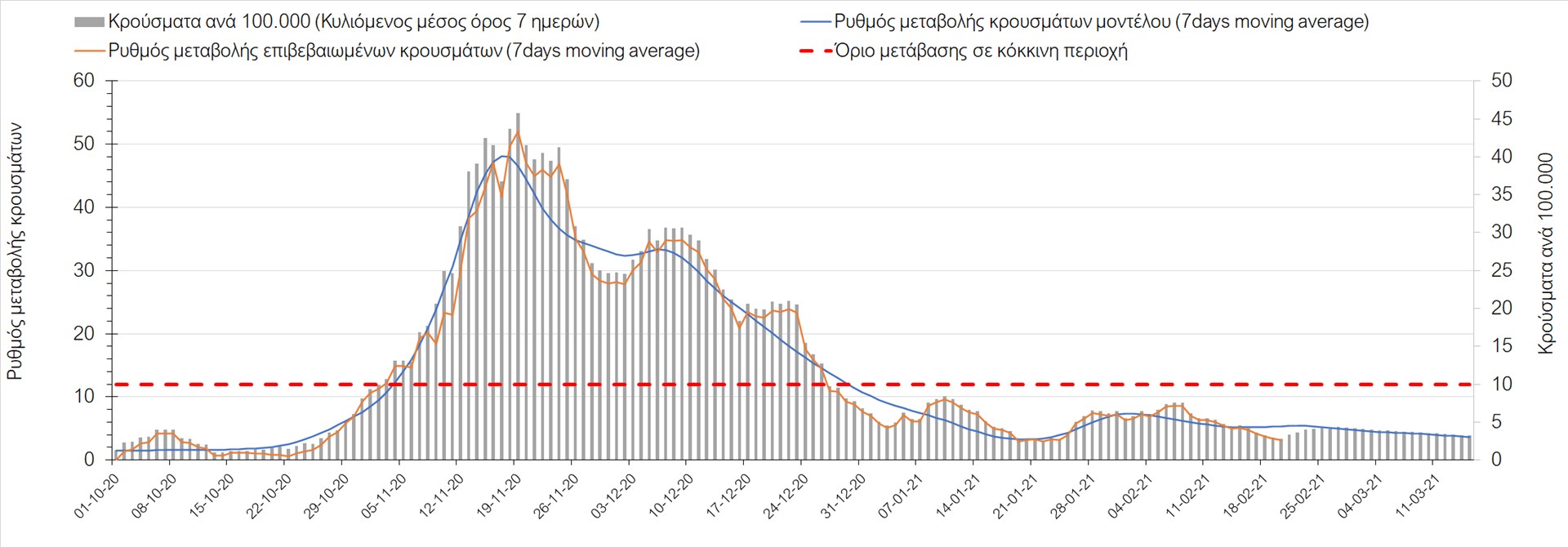 Mε βάση τα δεδομένα αυτής της εβδομάδας, καλώς εφαρμόσθηκαν τα περιοριστικά μέτρα που ισχύουν από τις 6 Φεβρουαρίου, τα οποία ίσως χρειαστούν επιπλέον αναθεώρηση, με βάση την επιδημιολογική εικόνα που θα επικρατήσει, ενώ επίσης καλώς εφαρμόσθηκε το lockdown μέχρι τις 28 Φεβρουαρίου στην Αθήνα. Με τα μέχρι τώρα δεδομένα, τα μέτρα αυτά φαίνονται να είναι ικανά να αναχαιτίσουν προσωρινά την επέλαση ενός τρίτου κύματος, εν αναμονή και επιπλέον στοιχείων, τόσο για τη μεταδοτικότητα του στελέχους B.1.1.7. του SARS-CoV-2, όσο και της διασποράς του στην κοινότητα.
