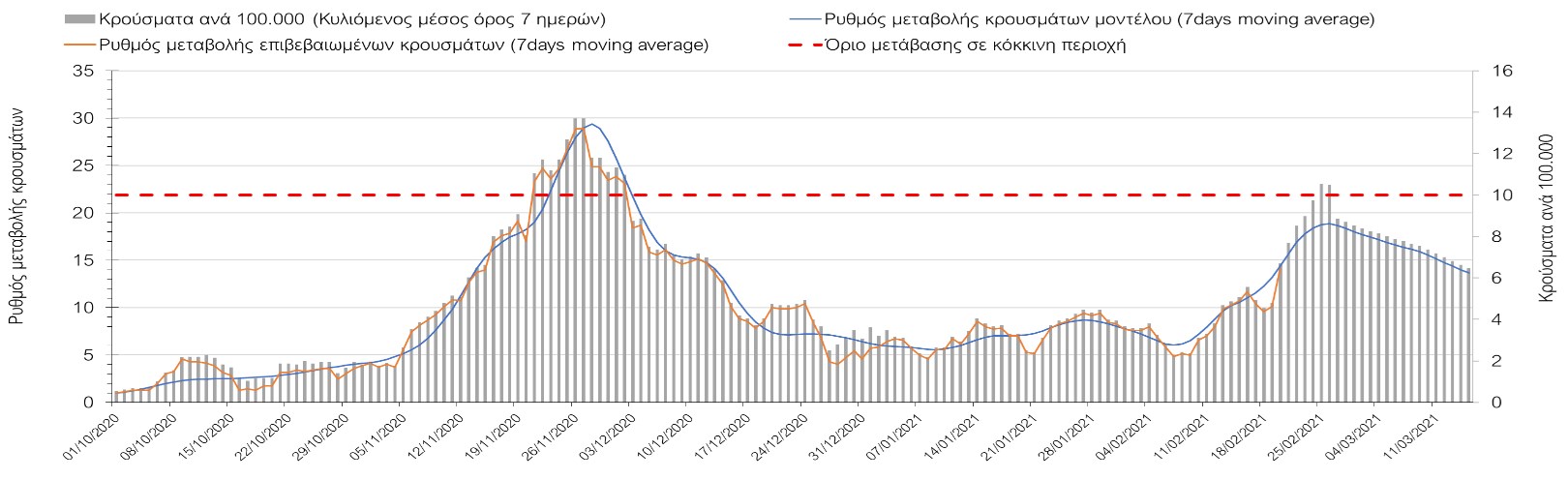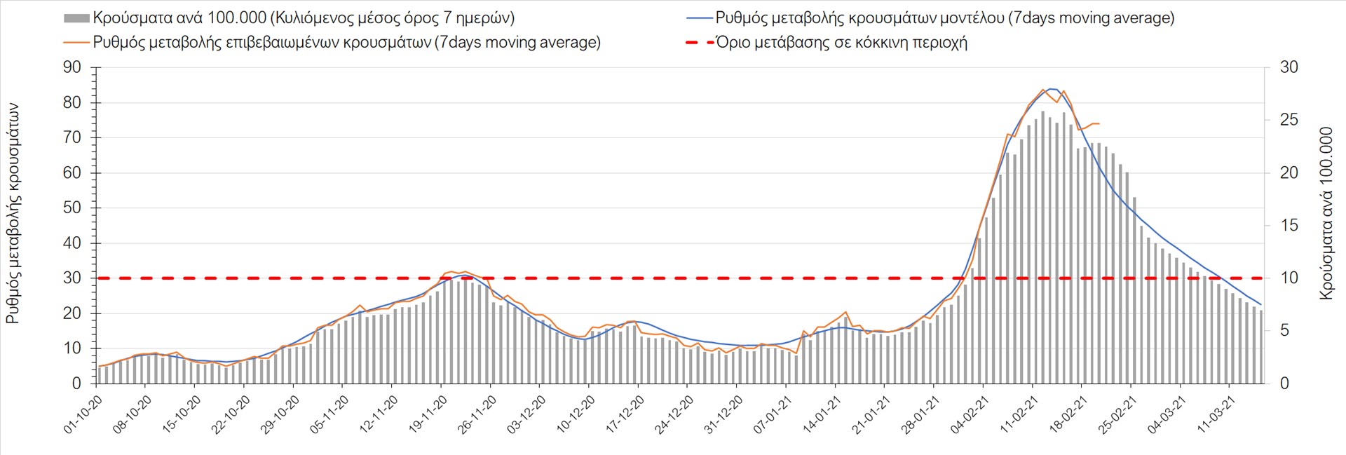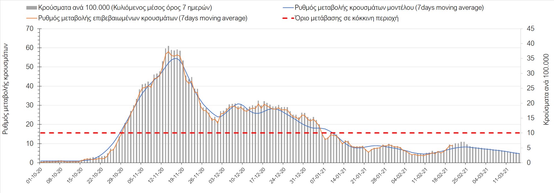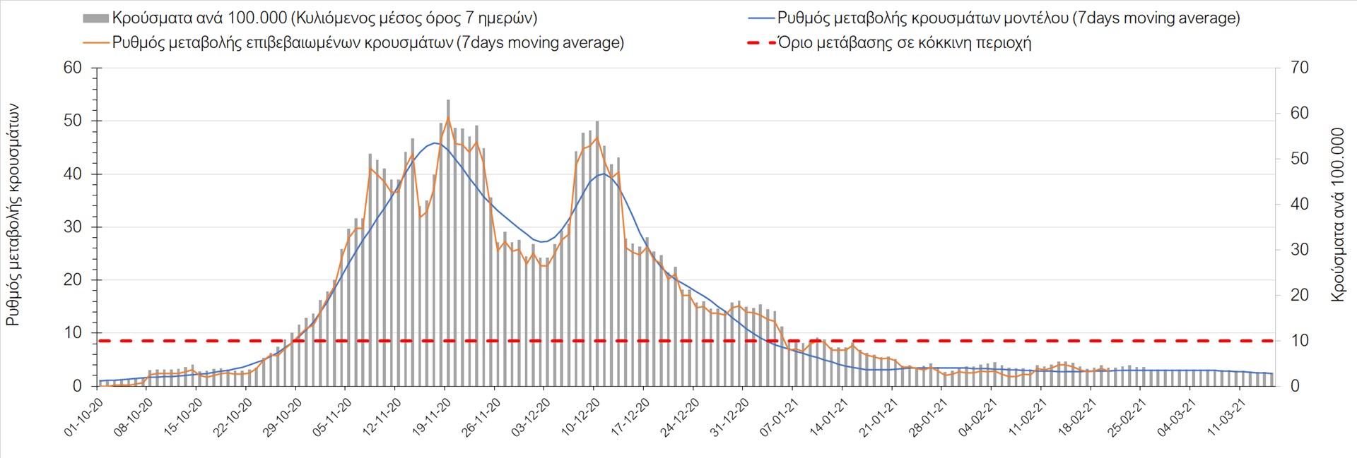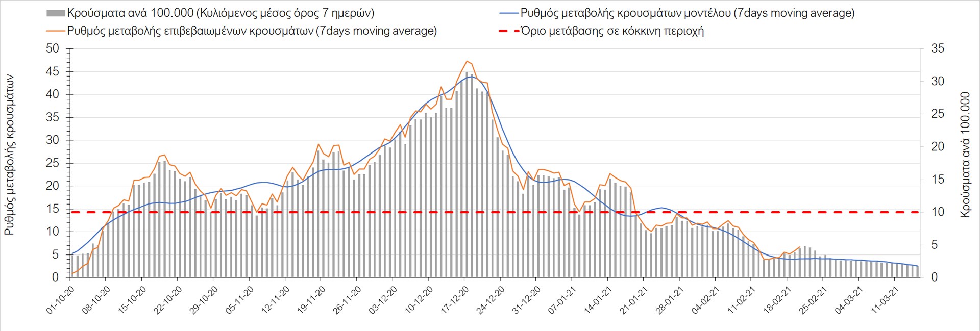 Mε βάση τα δεδομένα αυτής της εβδομάδας, καλώς εφαρμόσθηκαν τα περιοριστικά μέτρα που ισχύουν από τις 6 Φεβρουαρίου, τα οποία ίσως χρειαστούν επιπλέον αναθεώρηση, με βάση την επιδημιολογική εικόνα που θα επικρατήσει, ενώ επίσης καλώς εφαρμόσθηκε το lockdown μέχρι τις 28 Φεβρουαρίου στην Αθήνα. Με τα μέχρι τώρα δεδομένα, τα μέτρα αυτά φαίνονται να είναι ικανά να αναχαιτίσουν προσωρινά την επέλαση ενός τρίτου κύματος, εν αναμονή και επιπλέον στοιχείων, τόσο για τη μεταδοτικότητα του στελέχους B.1.1.7. του SARS-CoV-2, όσο και της διασποράς του στην κοινότητα.