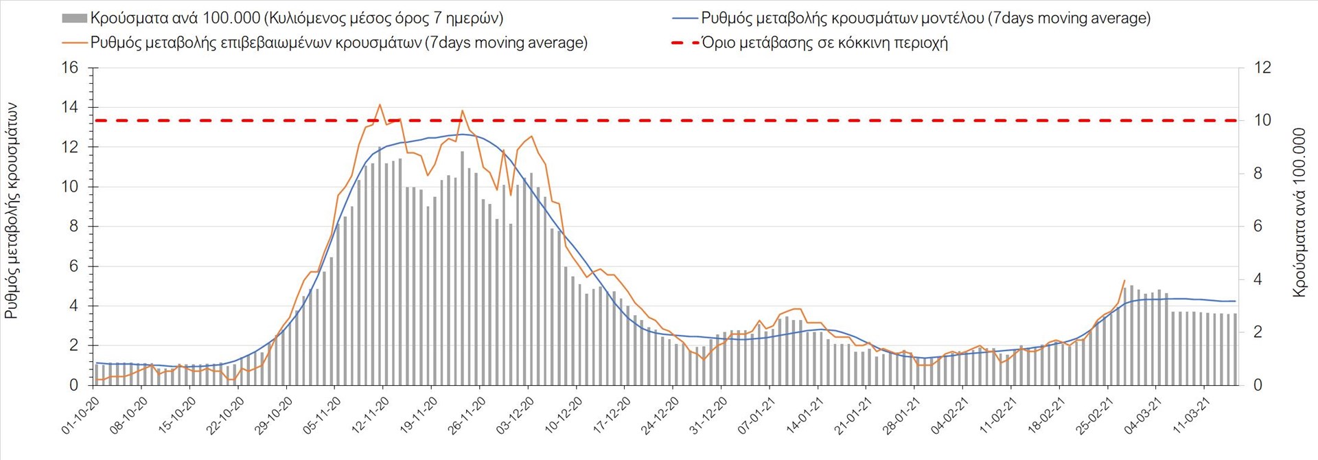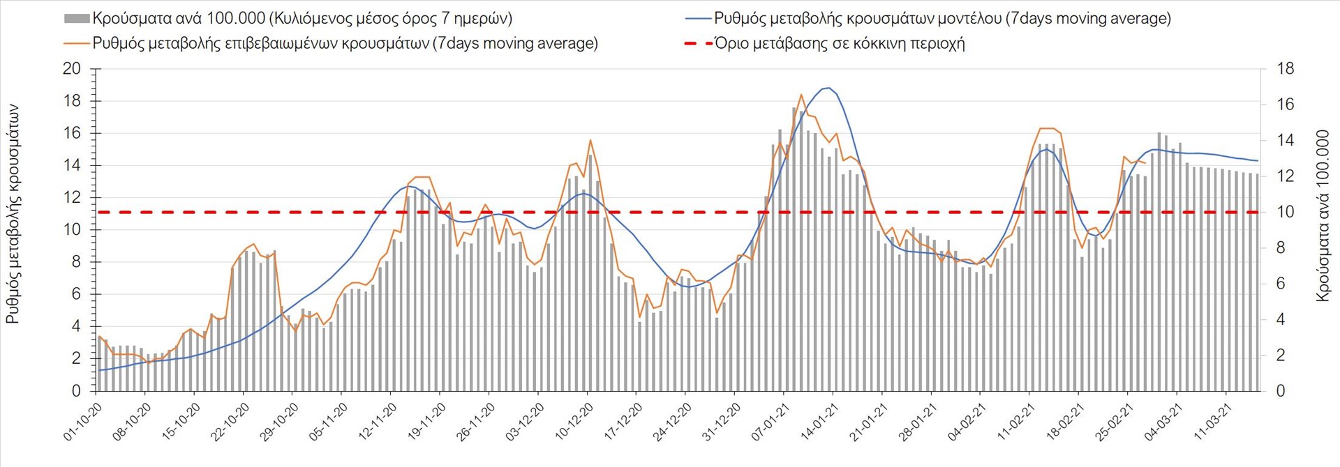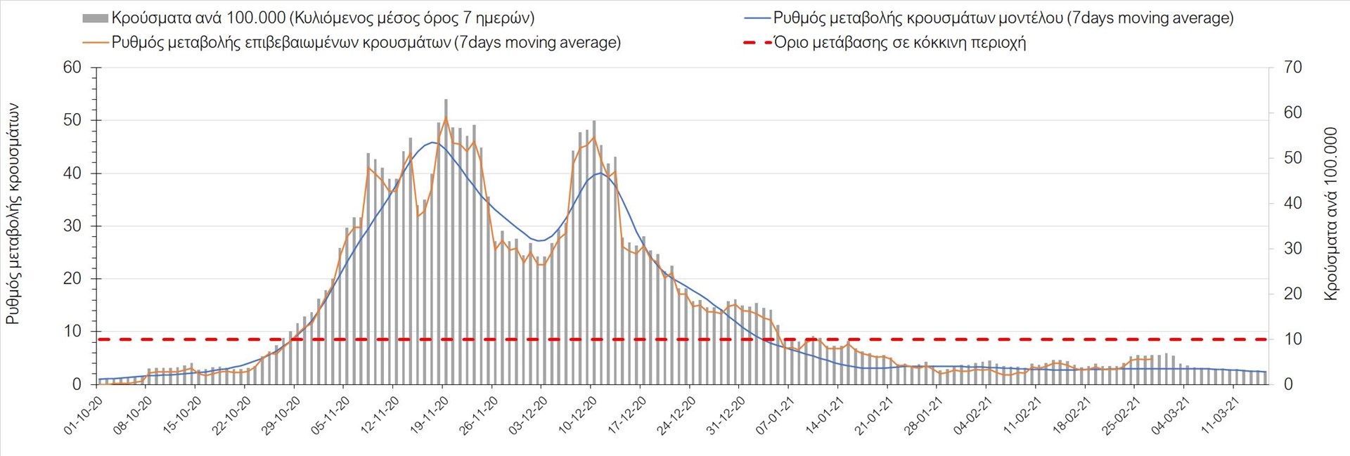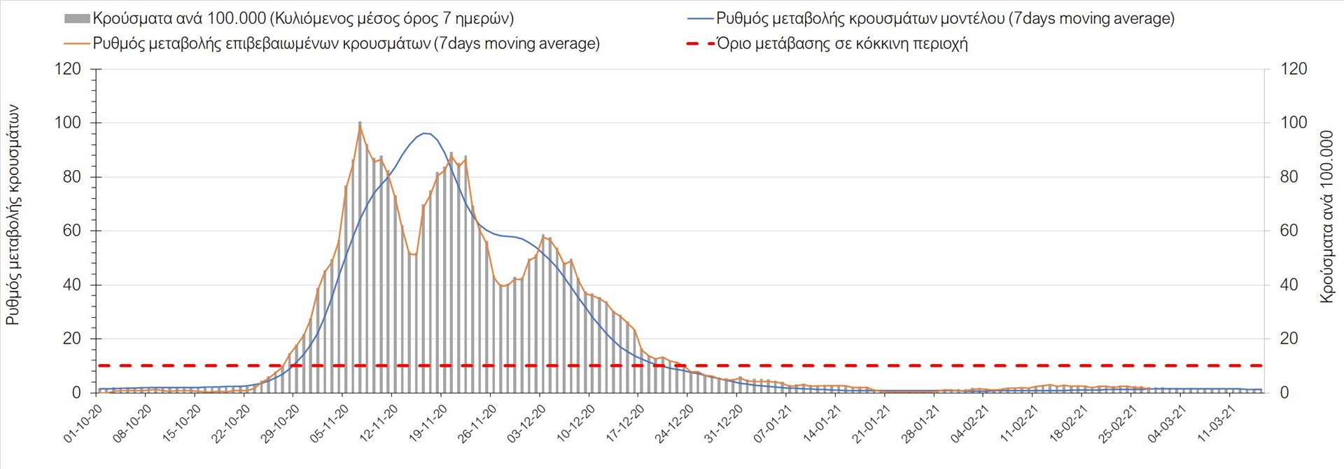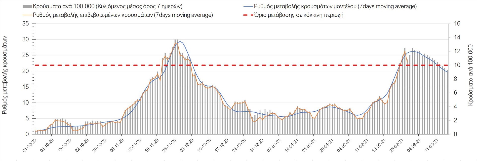 Mε βάση τα δεδομένα αυτής της εβδομάδας, καλώς εφαρμόσθηκαν τα περιοριστικά μέτρα που ισχύουν από τις 6 Φεβρουαρίου, τα οποία ίσως χρειαστούν επιπλέον αναθεώρηση, με βάση την επιδημιολογική εικόνα που θα επικρατήσει, ενώ επίσης καλώς εφαρμόσθηκε το lockdown μέχρι τις 28 Φεβρουαρίου στην Αθήνα, το οποίο προτείνεται να παραταθεί τουλάχιστον μέχρι τις 14 Μαρτίου. Με τα μέχρι τώρα δεδομένα, τα μέτρα αυτά δεν φαίνονται να είναι ικανά να αναχαιτίσουν προσωρινά την επέλαση ενός τρίτου κύματος, εν αναμονή και επιπλέον στοιχείων, τόσο για τη μεταδοτικότητα του στελέχους B.1.1.7. του SARS-CoV-2, όσο και της διασποράς του στην κοινότητα.