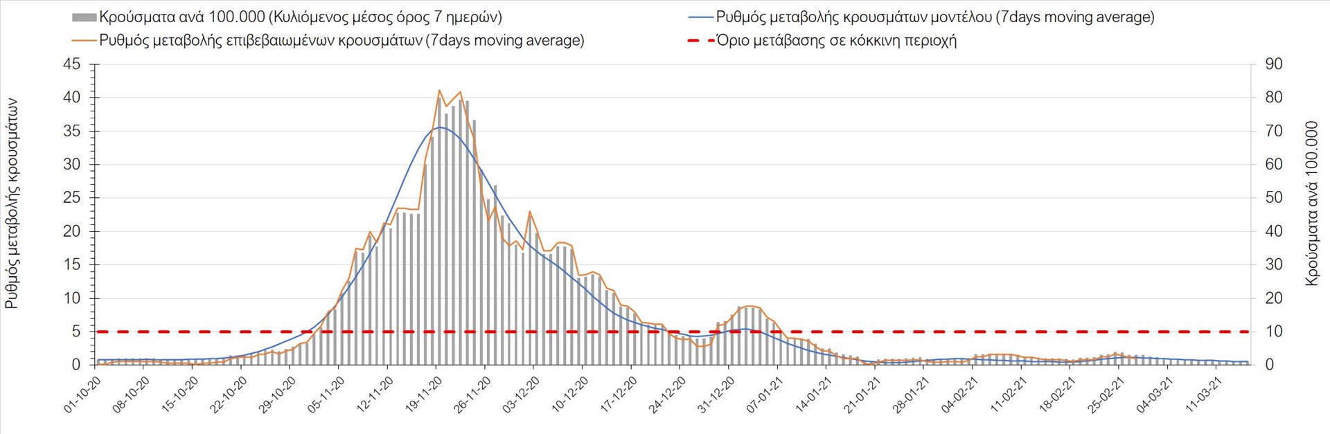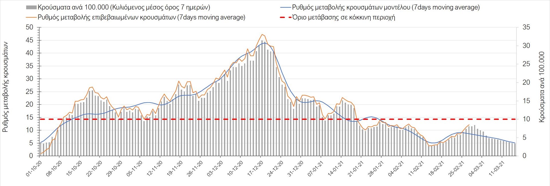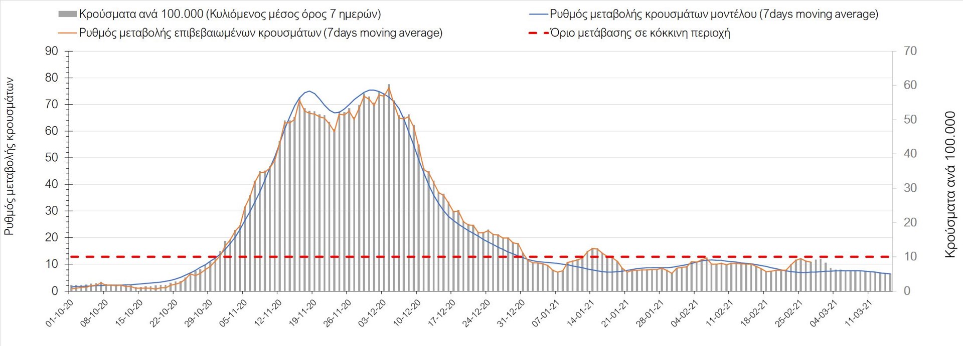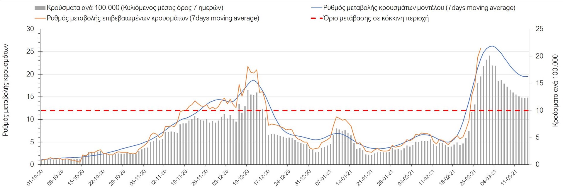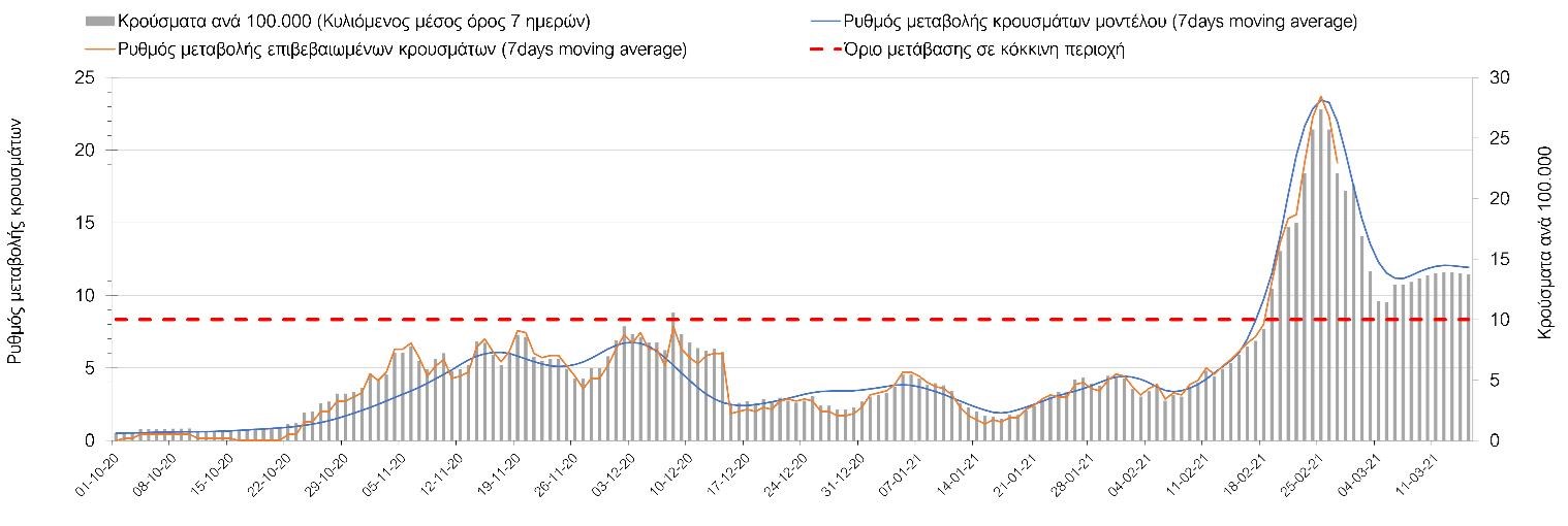 Mε βάση τα δεδομένα αυτής της εβδομάδας, καλώς εφαρμόσθηκαν τα περιοριστικά μέτρα που ισχύουν από τις 6 Φεβρουαρίου, τα οποία ίσως χρειαστούν επιπλέον αναθεώρηση, με βάση την επιδημιολογική εικόνα που θα επικρατήσει, ενώ επίσης καλώς εφαρμόσθηκε το lockdown μέχρι τις 28 Φεβρουαρίου στην Αθήνα, το οποίο προτείνεται να παραταθεί τουλάχιστον μέχρι τις 14 Μαρτίου. Με τα μέχρι τώρα δεδομένα, τα μέτρα αυτά δεν φαίνονται να είναι ικανά να αναχαιτίσουν προσωρινά την επέλαση ενός τρίτου κύματος, εν αναμονή και επιπλέον στοιχείων, τόσο για τη μεταδοτικότητα του στελέχους B.1.1.7. του SARS-CoV-2, όσο και της διασποράς του στην κοινότητα.