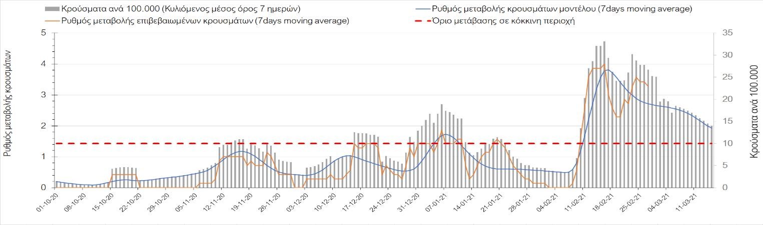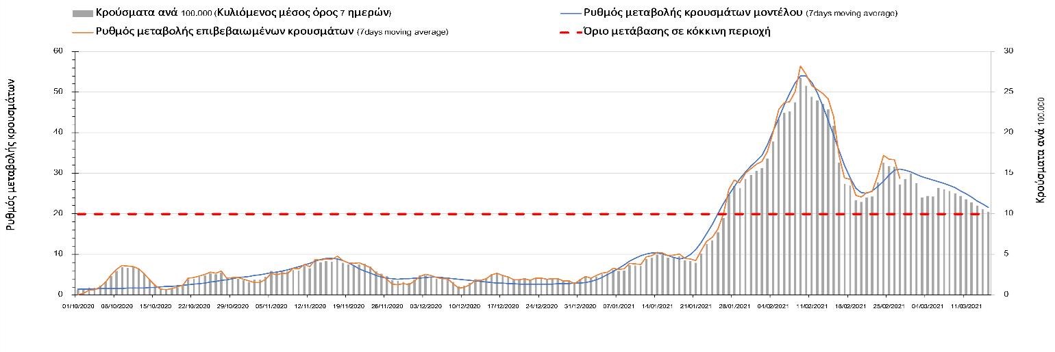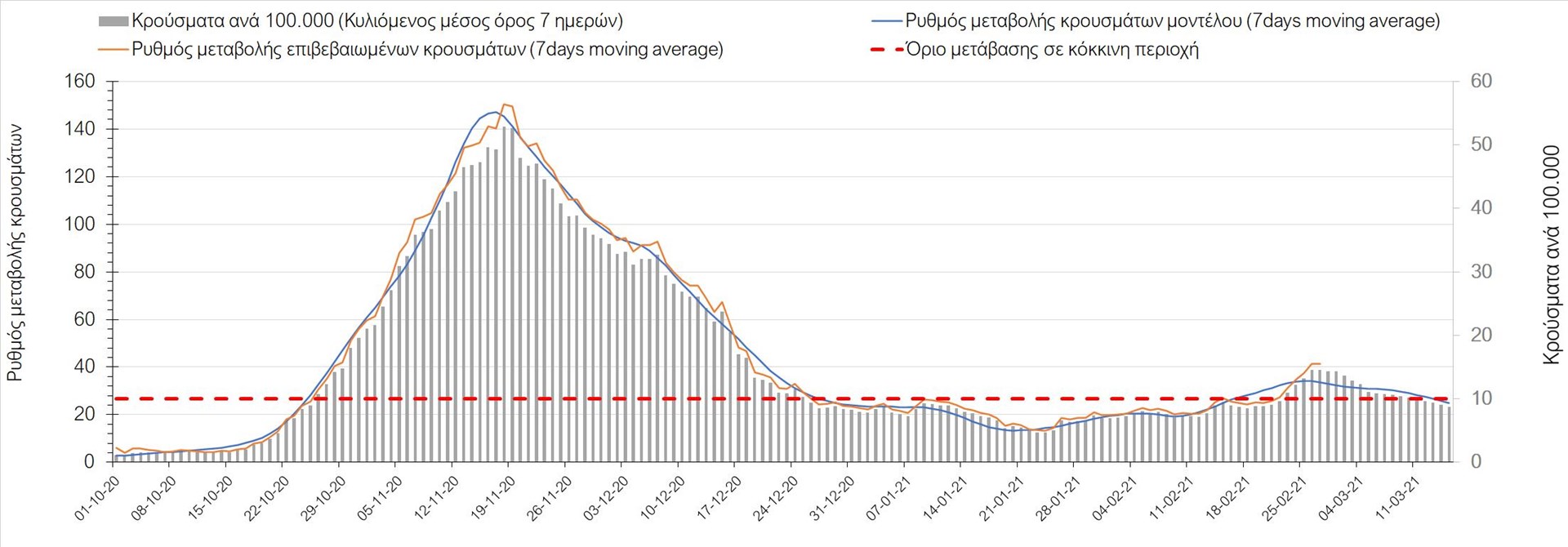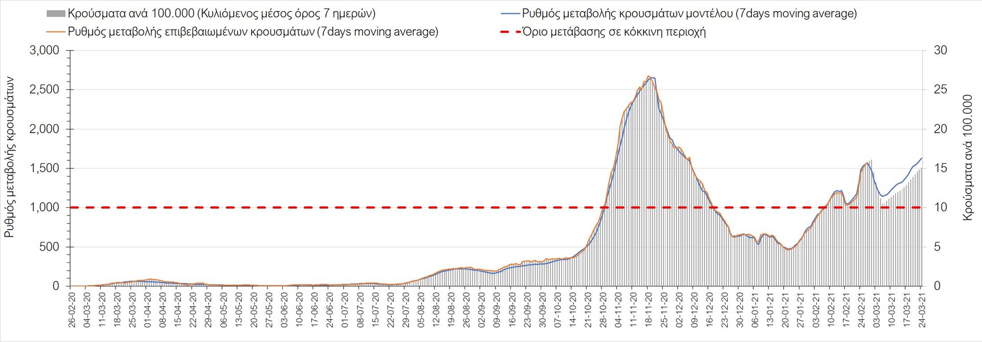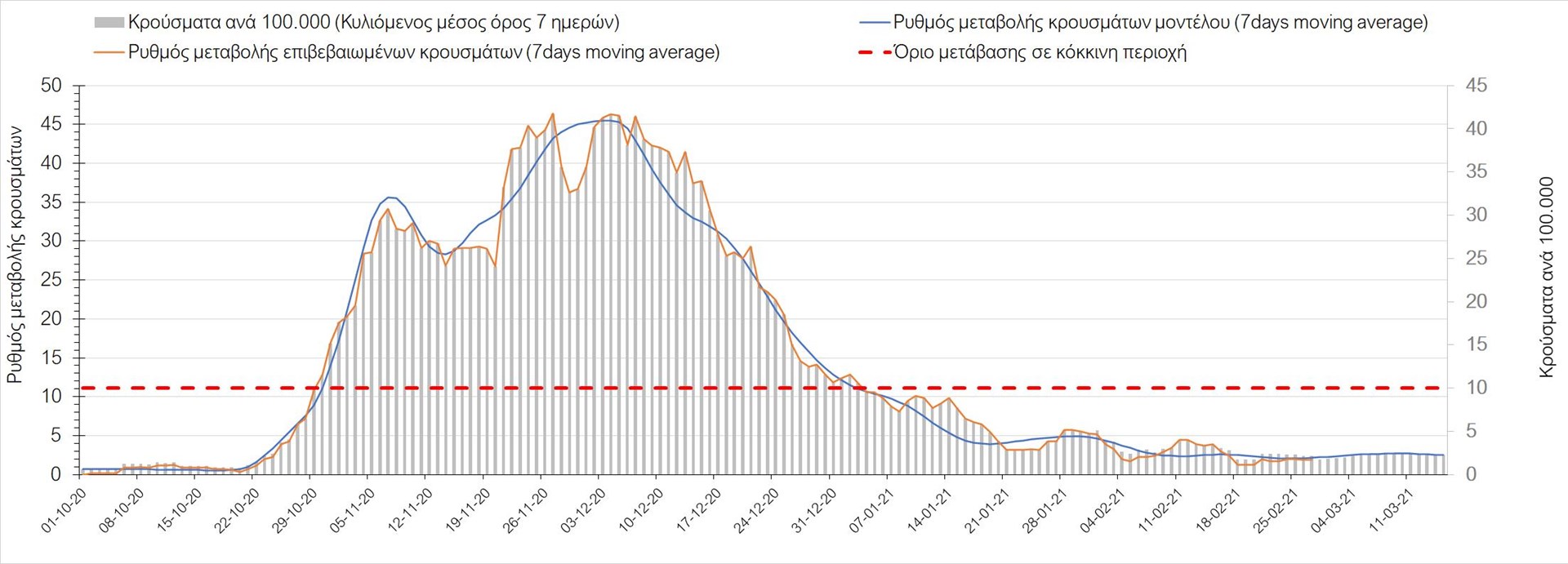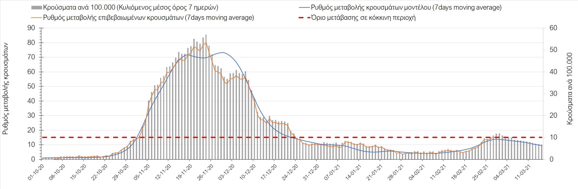Mε βάση τα δεδομένα αυτής της εβδομάδας, καλώς εφαρμόσθηκαν τα περιοριστικά μέτρα που ισχύουν από τις 6 Φεβρουαρίου, τα οποία ίσως χρειαστούν επιπλέον αναθεώρηση, με βάση την επιδημιολογική εικόνα που θα επικρατήσει, ενώ επίσης καλώς εφαρμόσθηκε το lockdown μέχρι τις 28 Φεβρουαρίου στην Αθήνα, το οποίο προτείνεται να παραταθεί τουλάχιστον μέχρι τις 14 Μαρτίου. Με τα μέχρι τώρα δεδομένα, τα μέτρα αυτά δεν φαίνονται να είναι ικανά να αναχαιτίσουν προσωρινά την επέλαση ενός τρίτου κύματος, εν αναμονή και επιπλέον στοιχείων, τόσο για τη μεταδοτικότητα του στελέχους B.1.1.7. του SARS-CoV-2, όσο και της διασποράς του στην κοινότητα.
