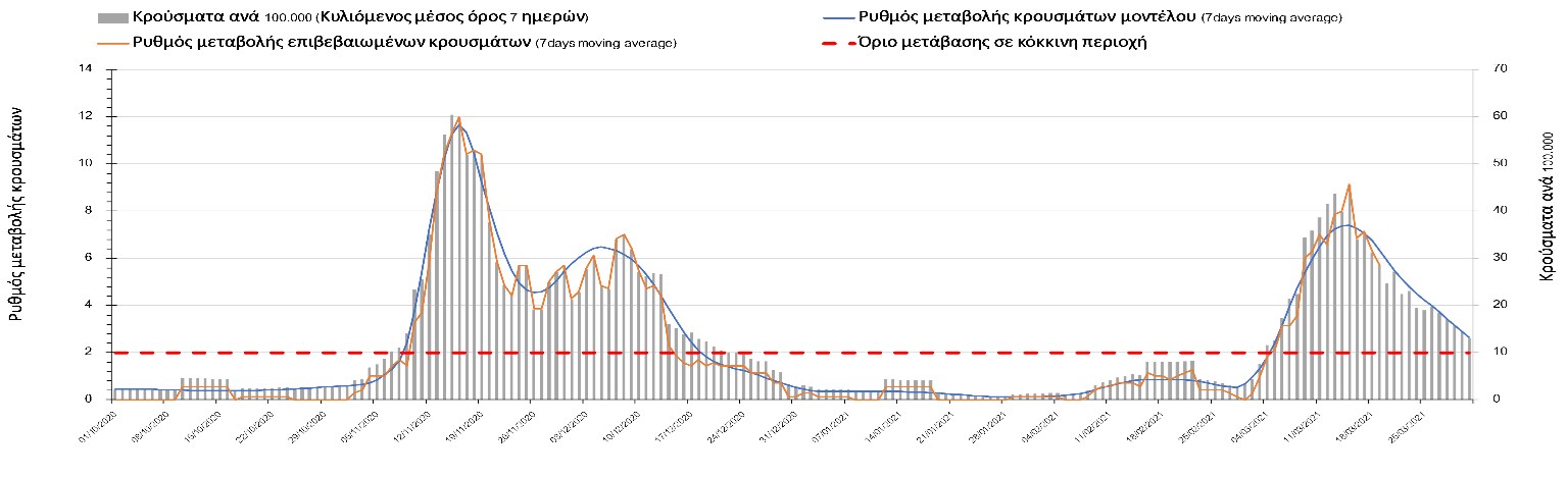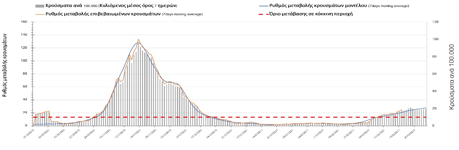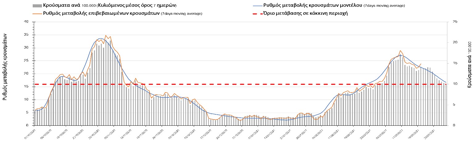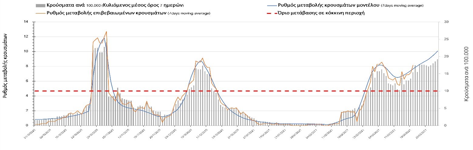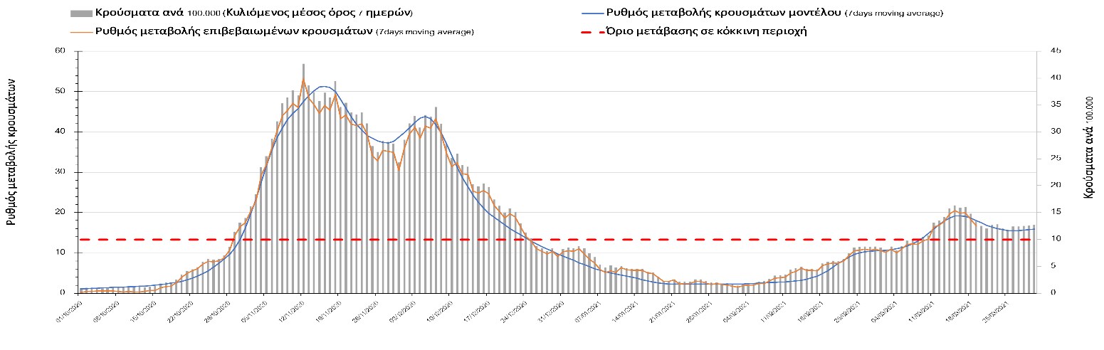 Η πορεία της καμπύλης διασποράς του ιού συνεχίζει να είναι αυξητική και η Λάρισα να χαρακτηρίζεται ως κόκκινη περιοχή, ενώ αναμένουμε να ξεκινήσει ήπια αποκλιμάκωση τις επόμενες μέρες.