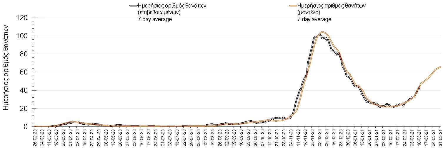 Ο αριθμός θανάτων (51) είναι αυξημένος σε σχέση με την Τετάρτη (43), και όπως είχαμε προβλέψει από την προηγούμενη εβδομάδα, ο κυλιόμενος εβδομαδιαίος μέσος όρος που την Πέμπτη ήταν 41, αναμένεται να αυξηθεί περαιτέρω μέχρι και τους 43 (σε επίπεδο μέσης εβδομαδιαίας τιμής), με δεδομένη την αύξηση του αριθμού των κρουσμάτων και την αύξηση του αριθμού των διασωληνωμένων.