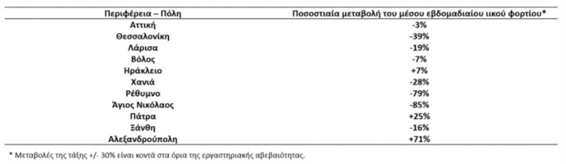 Στην Αττική παρατηρήθηκε μείωση 3%, ενώ στη Θεσσαλονίκη μείωση 39%.