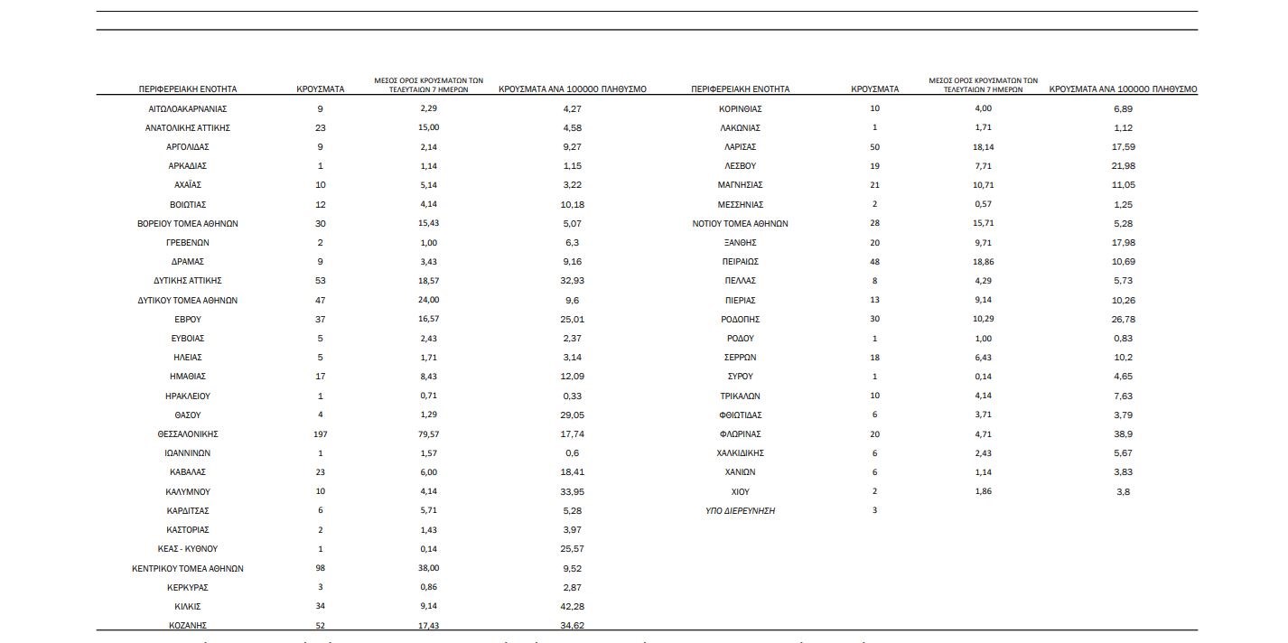 98 κρούσματα στην ΠΕ Κεντρικού Τομέα Αθηνών
