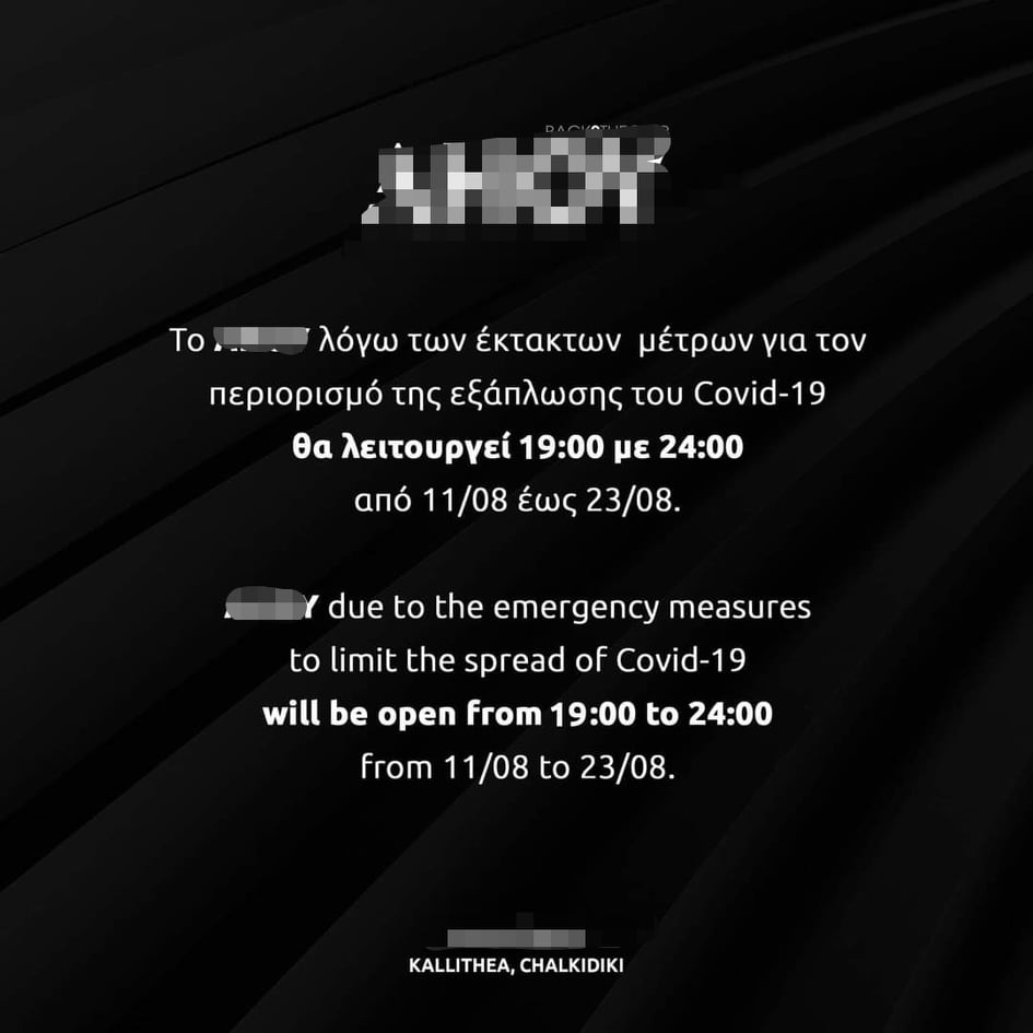 Τόσο στη Χαλκιδική όσο και στη Θεσσαλονίκη τα μαγαζιά, επιδεικνύοντας γρήγορα αντανακλαστικά, αναπροσάρμοσαν τα ωράρια λειτουργίας τους από τις 7 ή 8 το βράδυ μέχρι τις 12 τα μεσάνυχτα.