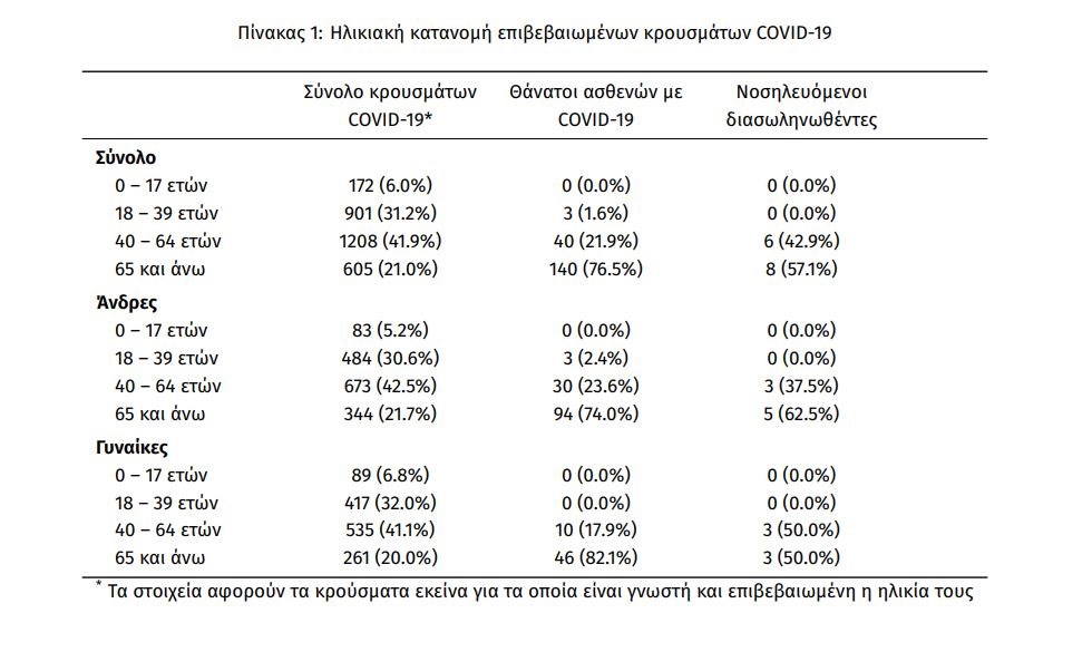 Η ηλικιακή κατανομή των (α) συνολικών κρουσμάτων, (β) των περιστατικών που κατέληξαν σε θάνατο και (γ) των ασθενών που νοσηλεύονται διασωληνωμένοι, είναι η ακόλουθη: