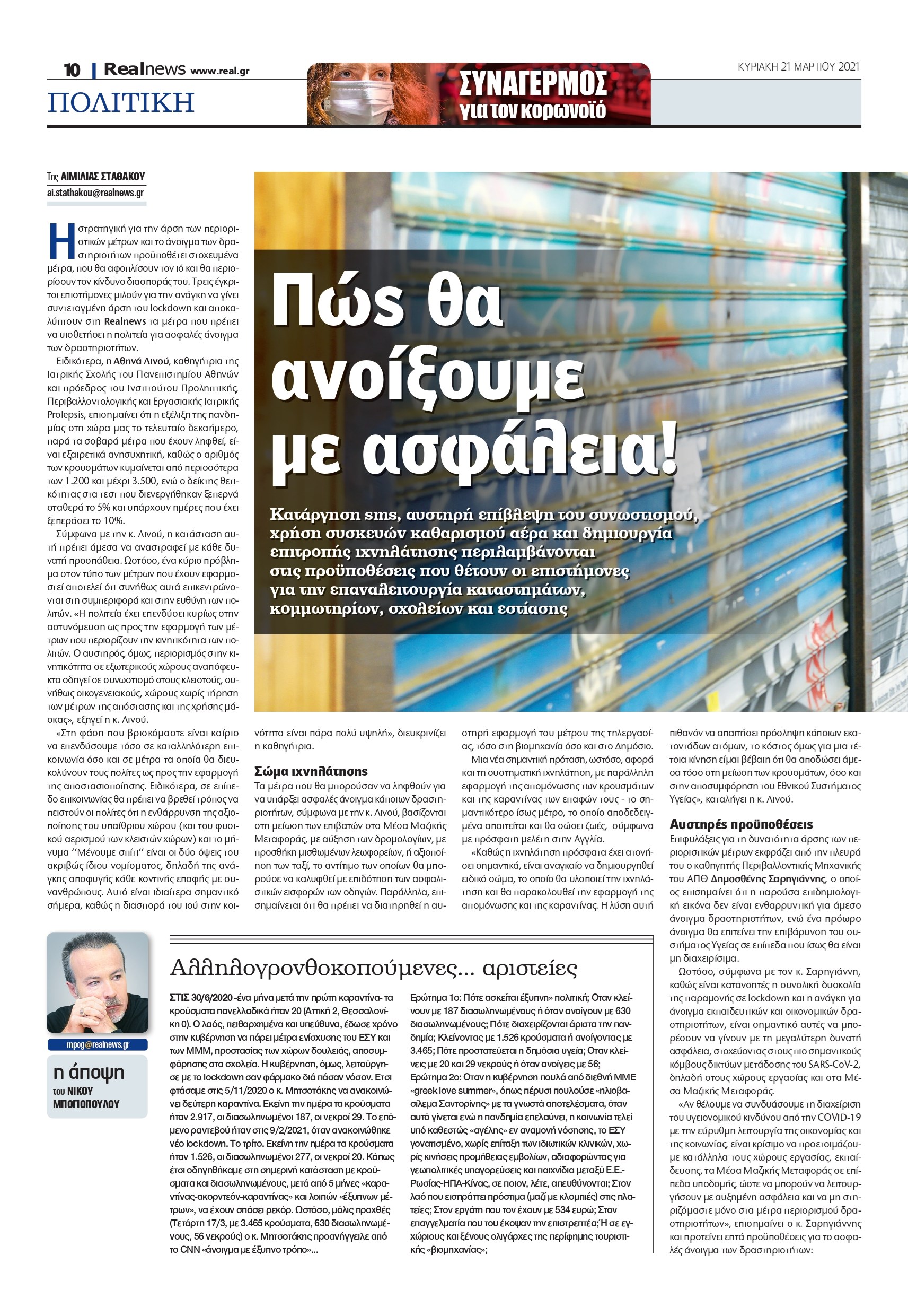 Η στρατηγική για την άρση των περιοριστικών μέτρων και το άνοιγμα των δραστηριοτήτων προϋποθέτει στοχευμένα μέτρα, που θα αφοπλίσουν τον κορονοϊό και θα περιορίσουν τον κίνδυνο διασποράς του. Τρεις έγκριτοι επιστήμονες μιλούν για την ανάγκη να γίνει συντεταγμένη άρση του lockdown και αποκαλύπτουν στη Realnews τα μέτρα που πρέπει να υιοθετήσει η πολιτεία για ασφαλές άνοιγμα των δραστηριοτήτων.