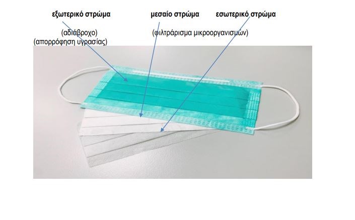 Περιγραφή των στρωμάτων της απλής χειρουργικής μάσκας