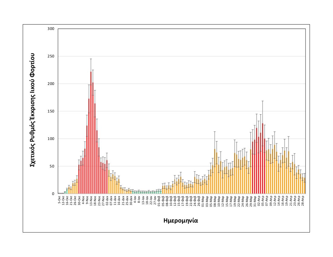 Στα δείγματα λαμβάνονται καθημερινά στην είσοδο της Εγκατάστασης Επεξεργασίας Λυμάτων Θεσσαλονίκης, αναφορικά με τις εξορθολογισμένες τιμές σχετικής έκκρισης ιικού φορτίου, η μέση τιμή των δύο πιο πρόσφατων μετρήσεων, δηλαδή της Τετάρτης 28/04 και της Πέμπτης 29/04 είναι: