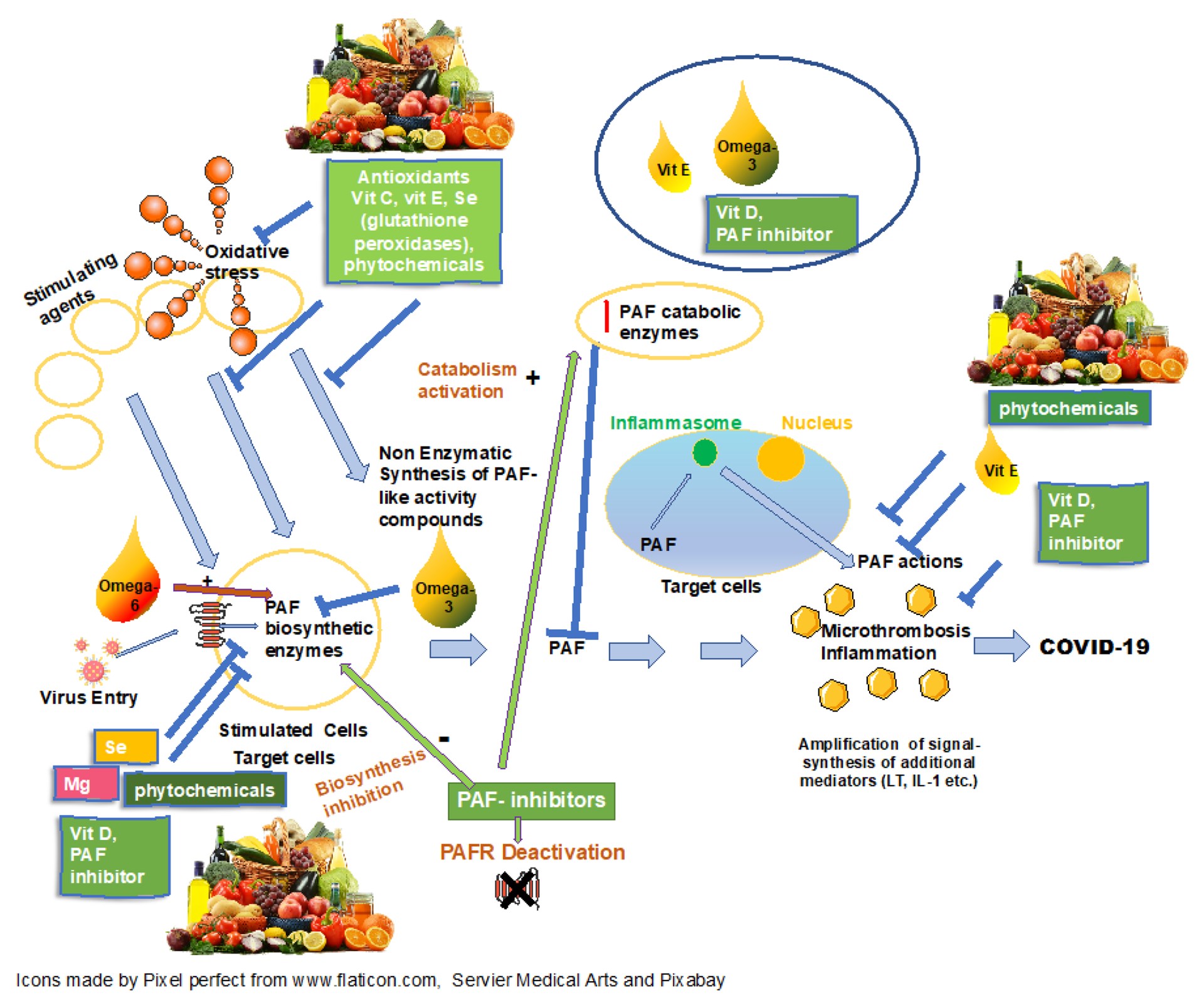 Το ίδιο σχεδόν διάστημα με την παραπάνω επιδημιολογική έρευνα δημοσιεύτηκε τον Μάϊο του 2021 στο επιστημονικό περιοδικό Nutrients μία “έρευνα απόδειξης της ιδέας” (Proof-of-Concept), των Ιταλικών Πανεπιστημίων του Τορίνο και Παλέρμο, με τίτλο “Μεσογειακή δίαιτα και λοίμωξη SARS-COV-2: Υπάρχει κάποια σχέση; Μια μελέτη απόδειξης της ιδέας“ (Mediterranean Diet and SARS-COV-2 Infection: Is There Any Association? A Proof–of–Concept Study) που έγινε σε 1206 συμμετέχοντες εθελοντές για το διάστημα Ιανουαρίου-Φεβρουαρίου 2021. Η έρευνα αυτή επίσης επιβεβαιώνει την ευεργετική δράση της Μεσογειακής δίαιτας έναντι της νόσου COVID-19. Σε αυτή την έρευνα των Ιταλικών Πανεπιστημίων, αναφέρεται επίσης το άρθρο στο Nutrients τον Ιανουάριο του 2021, στο οποίο η Ελληνική ομάδα διατύπωσε τον βιοχημικό μηχανισμό για την πιθανή προστατευτική δράση της Μεσογειακής δίαιτας έναντι της νόσου COVID-19. Επιπλέον, γίνεται και εκτενής αναφορά στο δημοσιευμένο έργο της τελευταίας δεκαπενταετίας της Ελληνικής ομάδας για τον προτεινόμενο μηχανισμό της ευεργετικής δράσης που ασκεί η Μεσογειακή δίαιτα μέσω της αναστολής του φλεγμονώδους και θρομβωτικού Παράγοντα Ενεργοποίησης των Αιμοπεταλίων (PAF).