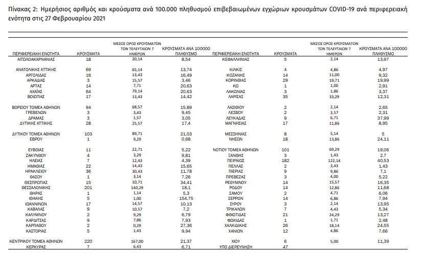 Από τα 1.621 εγχώρια κρούσματα, τα 815 εντοπίστηκαν στην Αττική, ενώ 201 στη Θεσσαλονίκη και 64 στην Αχαΐα.