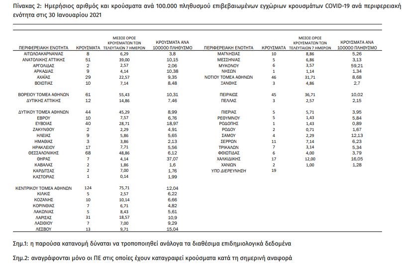 Δύσκολη είναι η κατάσταση στην Αχαΐα, την Εύβοια, τη Λάρισα, τη Λέσβο, τη Θήρα, τη Μύκονο και την Χαλκιδική με βάση τα κρούσματα ανά 100.000 πληθυσμό.
