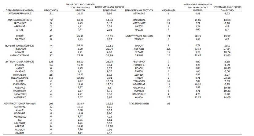 Αναλυτικά τα κρούσματα στις περιφερειακές ενότητες που ανήκουν στην Αττική: