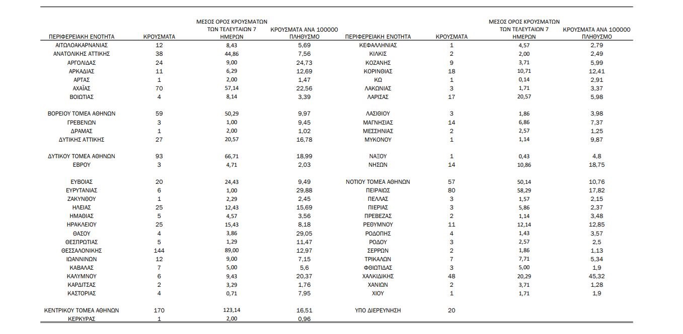 Ο ΕΟΔΥ ανακοίνωσε 1.121 νέα κρούσματα κορονοϊού το απόγευμα της Τρίτης. Η Αττική παραμένει στο “κόκκινο”, καθώς καταγράφηκαν 538 κρούσματα το τελευταίο 24ωρο. Ακολουθεί η Θεσσαλονίκη με 144 και η Αχαΐα με 70.