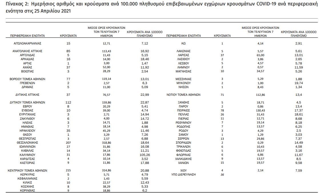 Η κατανομή των 1.387 νέων εγχώριων κρουσμάτων ανά Περιφερειακή Ενότητα παρουσιάζεται στον κατωτέρω πίνακα.