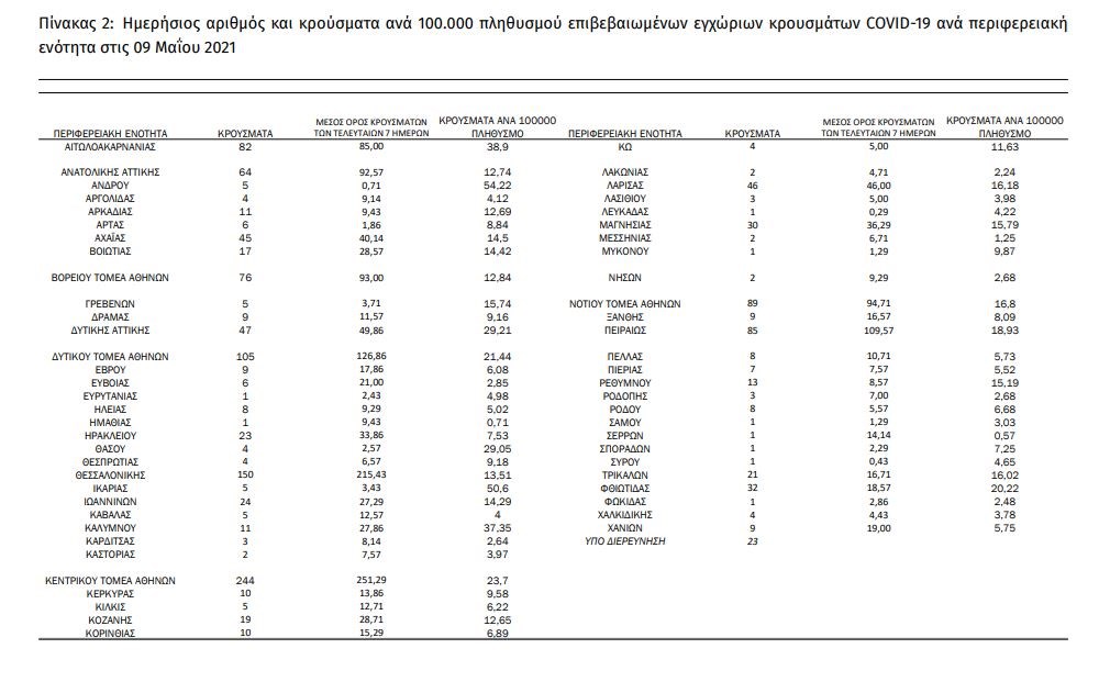 Η κατανομή των 1.427 νέων εγχώριων κρουσμάτων ανά Περιφερειακή Ενότητα παρουσιάζεται στον κατωτέρω πίνακα.