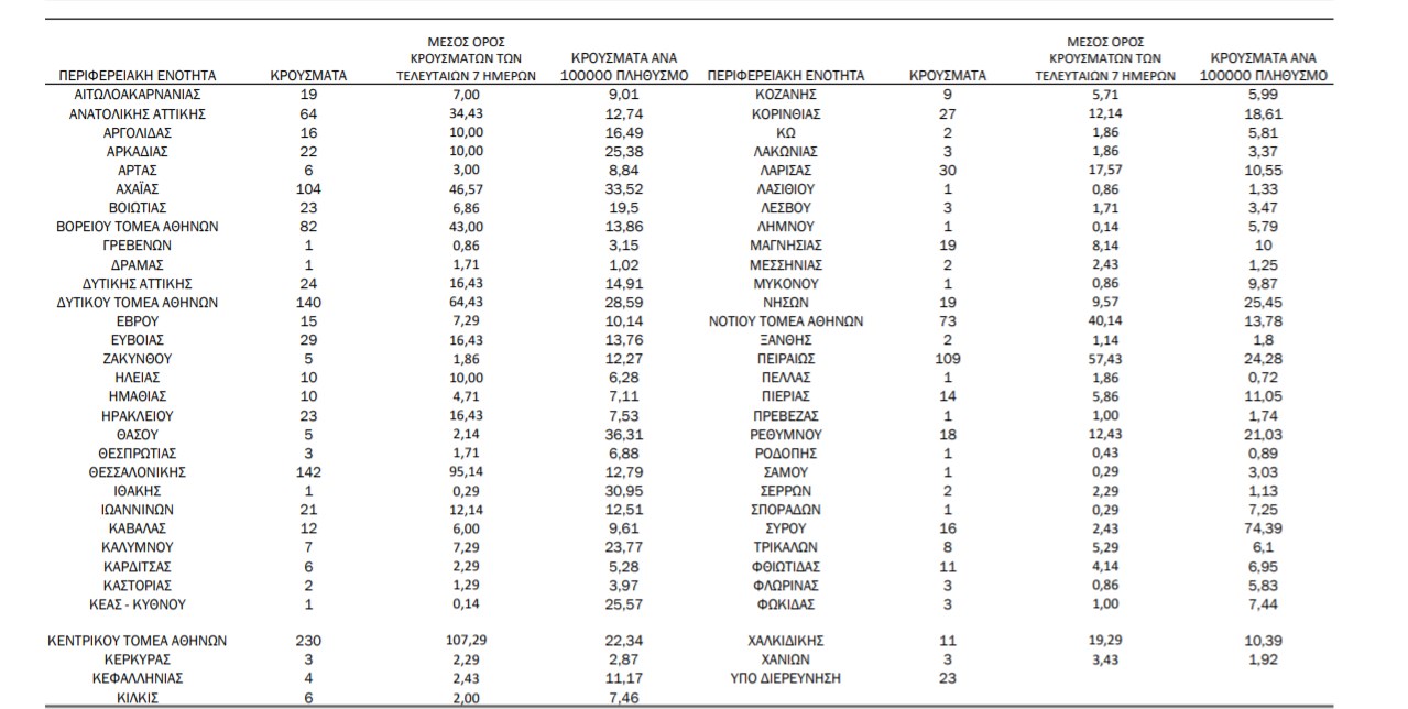 Αναλυτικά η γεωγραφική κατανομή των κρουσμάτων:
