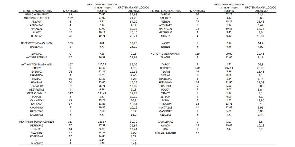 Ο ΕΟΔΥ ανακοίνωσε 1.918 νέα κρούσματα κορονοϊού το απόγευμα της Πέμπτης. Στην Αττική καταγράφηκαν 990 νέες μολύνσεις το τελευταίο 24ωρο. Υπάρχει μια μικρή μείωση σε σχέση με την Τετάρτη, όπου είχαν εντοπιστεί 1.056 νέα κρούσματα. Στη Θεσσαλονίκη καταγράφηκαν 142 νέες μολύνσεις, στην Αιτωλοακαρνανία 73 και στη Λάρισα 60.