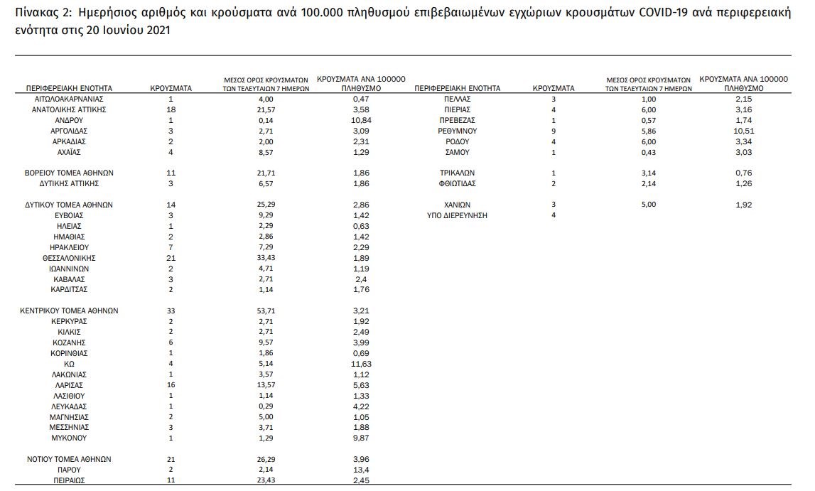 Δείτε την κατανομή των 237 νέων εγχώριων κρουσμάτων ανά Περιφερειακή Ενότητα: