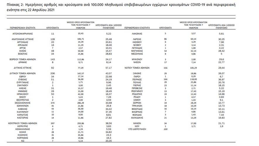 Δύσκολη παραμένει η κατάσταση στην Αττική, καθώς καθημερινά καταγράφονται σχεδόν τα μισά κρούσματα κορονοϊού. Σύμφωνα με την επίσημη ενημέρωση του ΕΟΔΥ, από το σύνολο των 2.759 νέων κρουσμάτων του νέου ιού στη χώρα 6 είναι εισαγόμενα εκ των οποίων 2 εντοπίστηκαν κατόπιν ελέγχων στις πύλες εισόδου της χώρας. Η κατανομή των 2.753 νέων εγχώριων κρουσμάτων ανά Περιφερειακή Ενότητα παρουσιάζεται στον παρακάτω πίνακα. Το Λεκανοπέδιο βρίσκεται σε ασφυκτικό κλοιό, καθώς το τελευταίο 24ωρο καταγράφηκαν 1305 νέα κρούσματα. Προβληματική η κατάσταση στη Θεσσαλονίκη με 374 νέες μολύνσεις, ενώ στην Αχαΐα εντοπίστηκαν 48 νέα κρούσματα και στη Λάρισα 86. Στη Μαγνησία καταγράφονται 54 νέα κρούσματα, στην Εύβοια 51 και στην Κοζάνη 35.