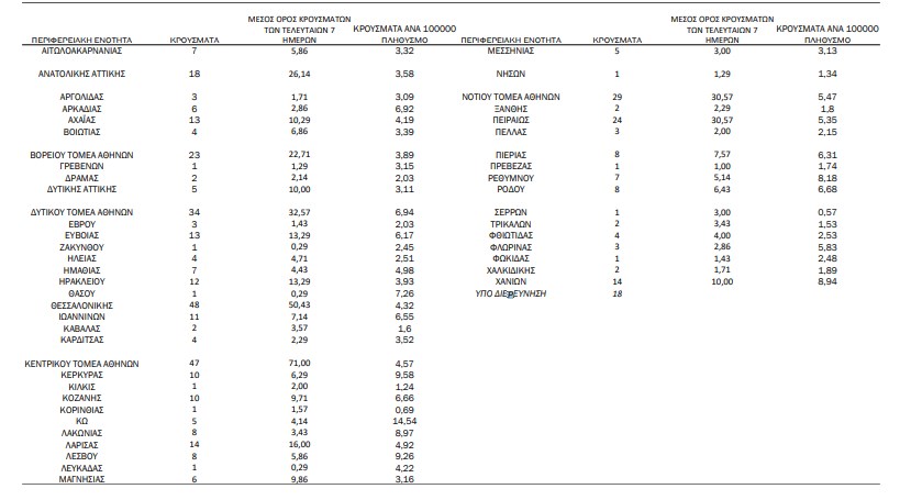 Έτσι από τα 466 εγχώρια κρούσματα, τα 181 καταγράφονται στην Αττική, ενώ στη Θεσσαλονίκη είναι 48.