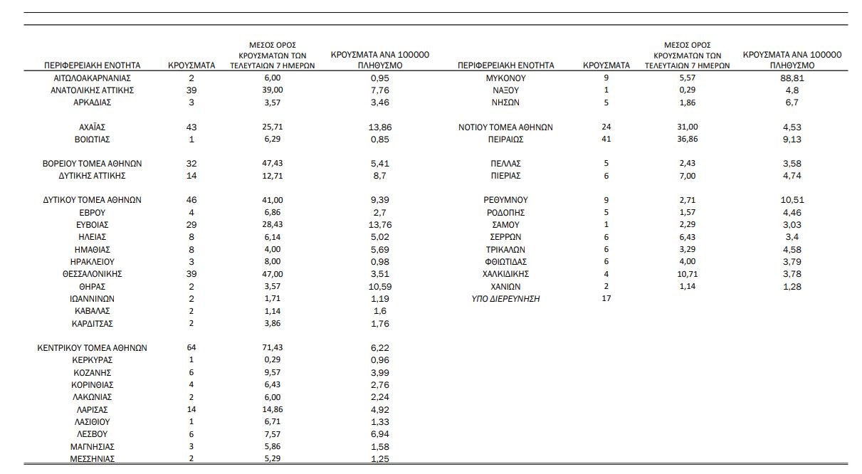 Αναλυτικά η γεωγραφική κατανομή των κρουσμάτων: