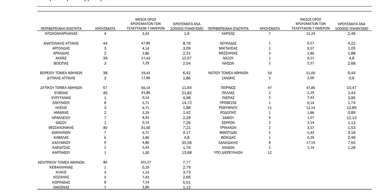 Ο ΕΟΔΥ ανακοίνωσε 638 νέα κρούσματα κορονοϊού το απόγευμα της Δευτέρας. Η Αττική παραμένει στο “κόκκινο”, δεδομένου ότι εντοπίστηκαν περισσότερα από τα μισά κρούσματα, για την ακρίβεια 321. Ανησυχία υπάρχει για τη Θεσσαλονίκη, στην οποία καταγράφηκαν 80 κρούσματα, αλλά και για την Εύβοια που μετρά 46 νέα κρούσματα και την Αχαΐα που έχει 37.