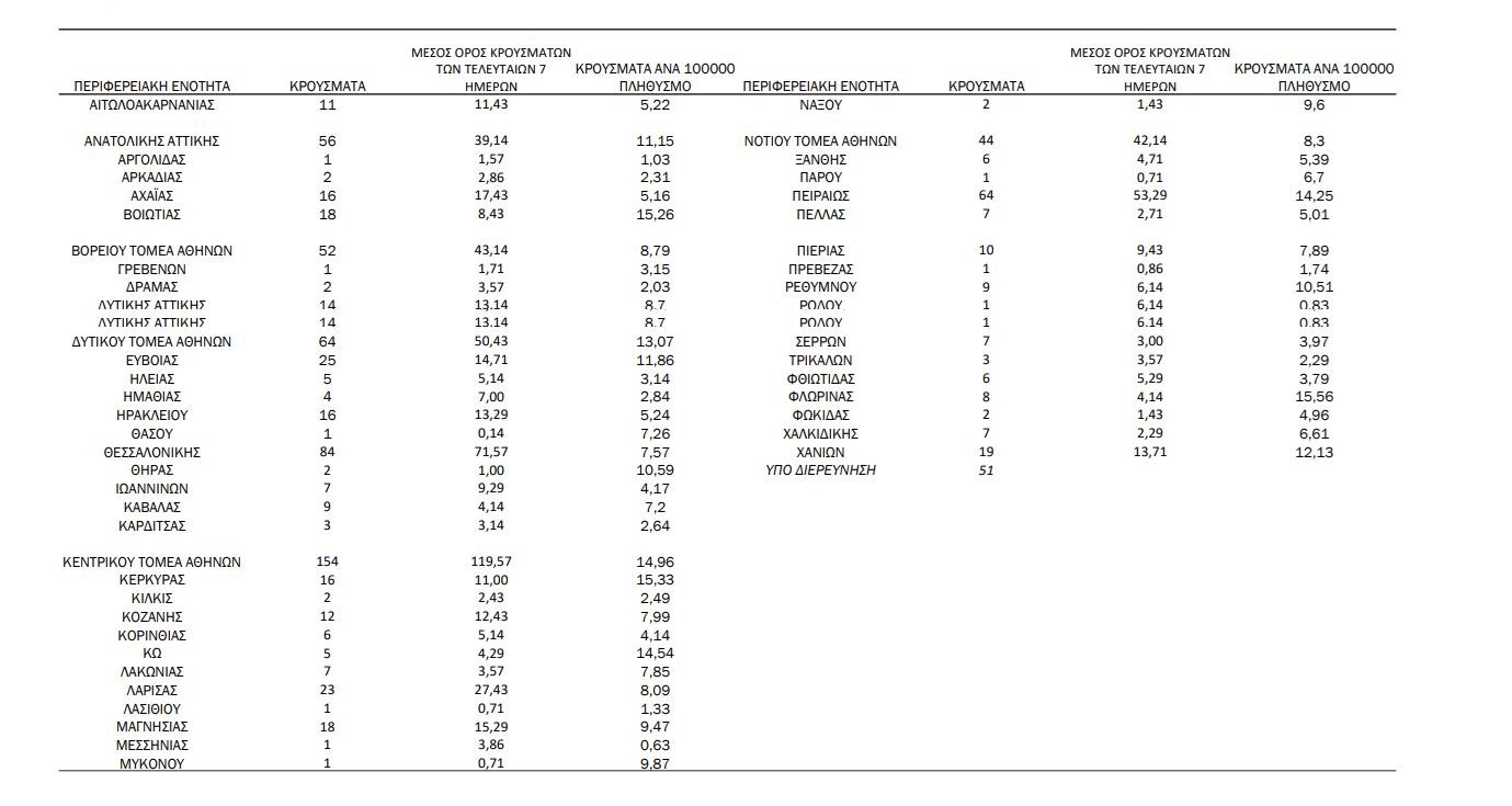 Ο ΕΟΔΥ ανακοίνωσε 890 νέα κρούσματα κορονοϊού το απόγευμα της Τετάρτης. Στην Αττική εντοπίστηκαν περισσότερα από τα μισά, για την ακρίβεια 448. Ακολουθούν η Θεσσαλονίκη με 84, η Εύβοια με 25, η Λάρισα με 23, τα Χανιά με 19, η Μαγνησία με 18, η Κέρκυρα με 16, η Αχαΐα με 16 και το Ηράκλειο με 16.