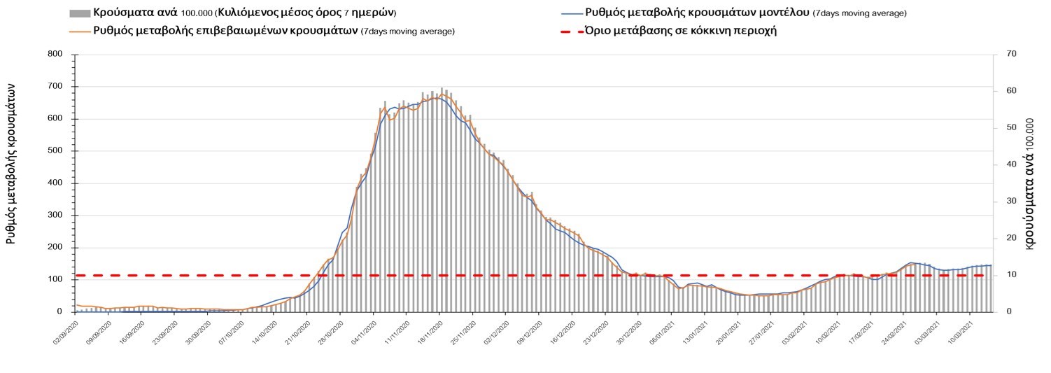 Για τη Θεσσαλονίκη, εκτιμούν ότι ακολουθεί την ήπια αύξηση που αναμενόταν αυτή την εβδομάδα. “Παρόλο που η αυξητική τάση είναι ακόμα συγκρατημένη, οι αβεβαιότητες που εισάγει η μη πλήρης εικόνα της πραγματικής διασποράς της βρετανικής και (κυρίως) της νοτιοαφρικανικής μετάλλαξης του SARS-CoV-2 στην κοινότητα, καθιστούν αναγκαία τη λήψη επιπλέον μέτρων προληπτικά και στη Θεσσαλονίκη, δεδομένου ότι όσο νωρίτερα ληφθούν μέτρα αντιμετώπισης της διασποράς στην κοινότητα, τόσο καλύτερη θα είναι η απόδοσή τους” επισημαίνουν, διευκρινίζοντας που μιλούν για λήψη μέτρων συνολικά για τη Θεσσαλονίκη και όχι μόνο σε συγκεκριμένους δήμους, όπως ο Δήμος Ευόσμου-Κορδελιού.