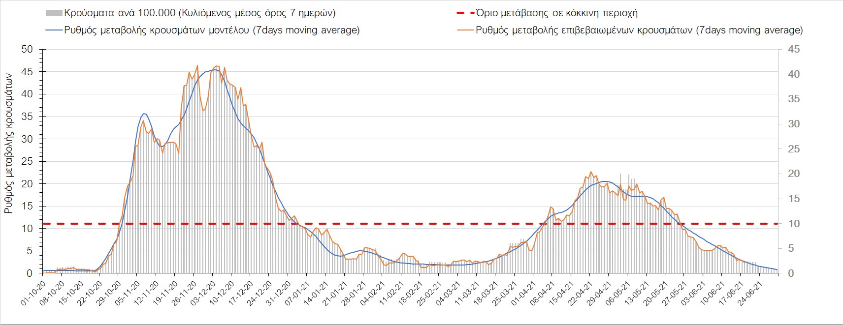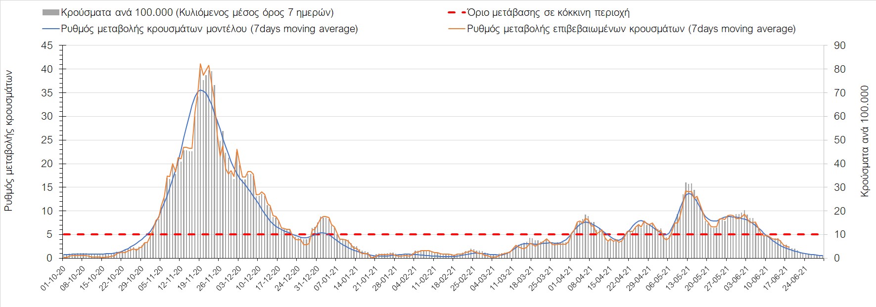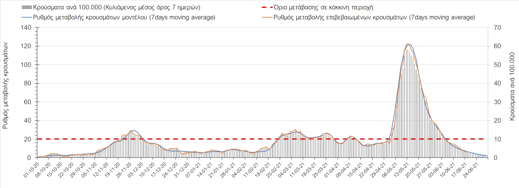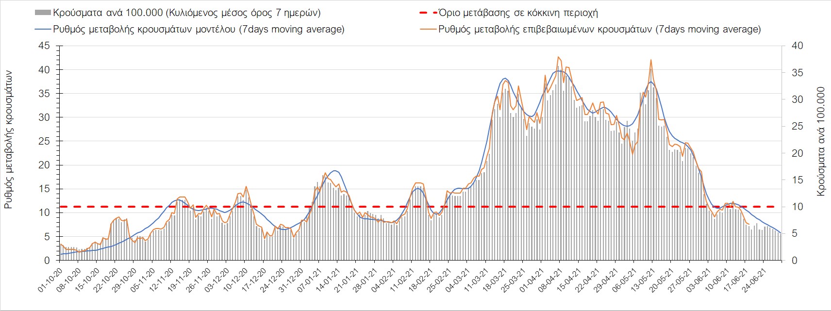 Το enikos.gr καθημερινά, μετά τις ανακοινώσεις του ΕΟΔΥ για τον κορονοϊό παρουσιάζει την ποσοτική ανάλυση των επιδημιολογικών δεδομένων, σε συνεργασία με την ομάδα του Δημοσθένη Σαρηγιάννη, διευθυντή του Εργαστηρίου Περιβαλλοντικής Μηχανικής του Αριστοτελείου Πανεπιστημίου Θεσσαλονίκης και διευθυντή της Ερευνητικής Ομάδας HERACLES για το Εκθεσίωμα και την Ανθρώπινη Υγεία του Κέντρου Διεπιστημονικής Έρευνας και Καινοτομίας του ΑΠΘ. Σύμφωνα με την εκτίμηση του, η Αττική είναι στο όριο ώστε να πέσει ο εβδομαδιαίος μέσος όρος κάτω από τα 10 κρούσματα ανά 100.000 κατοίκους.