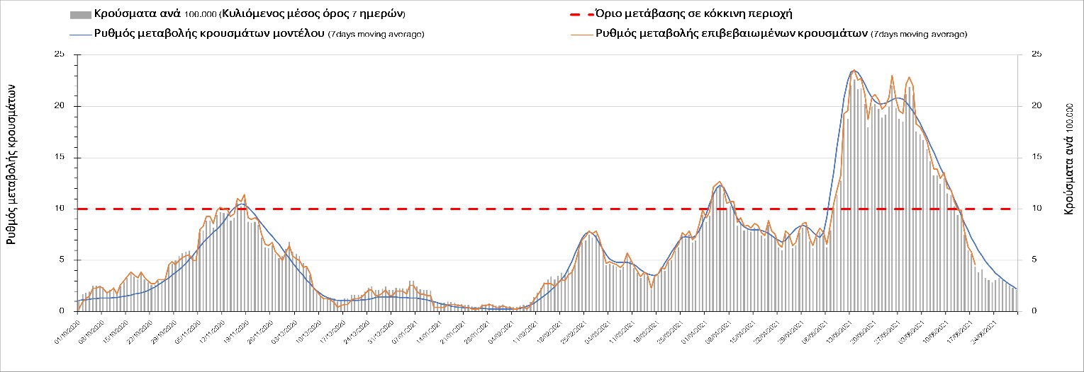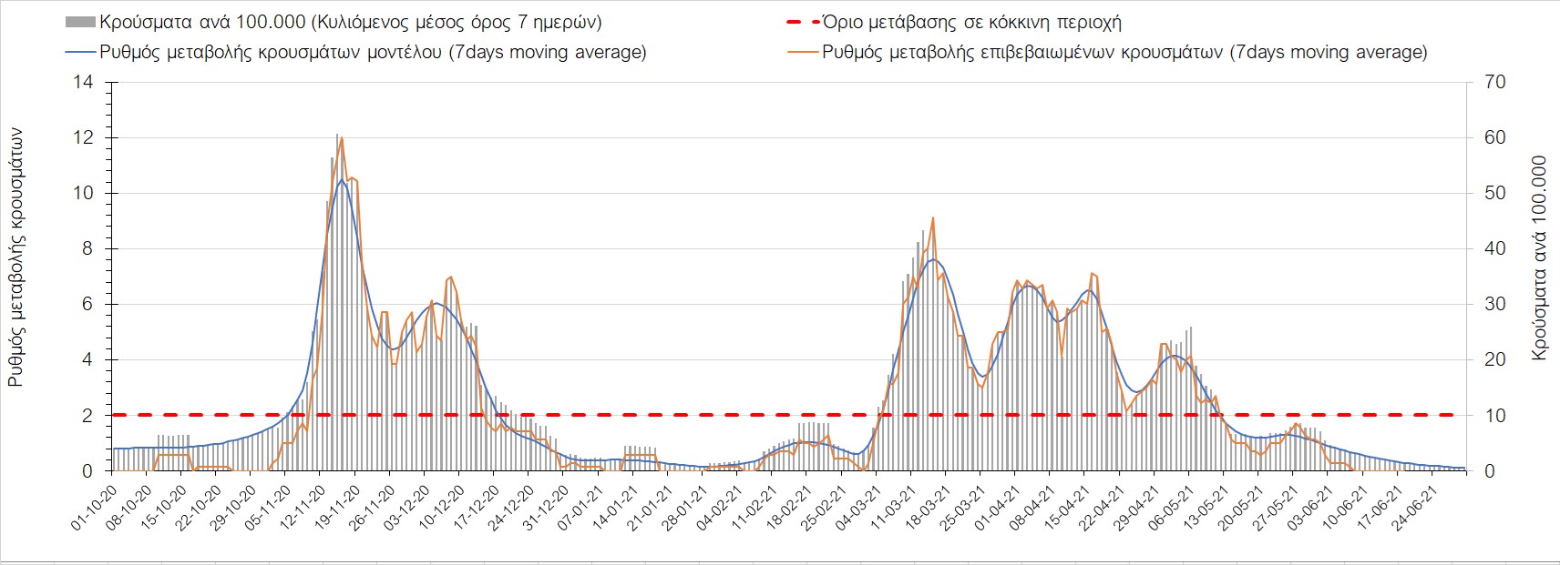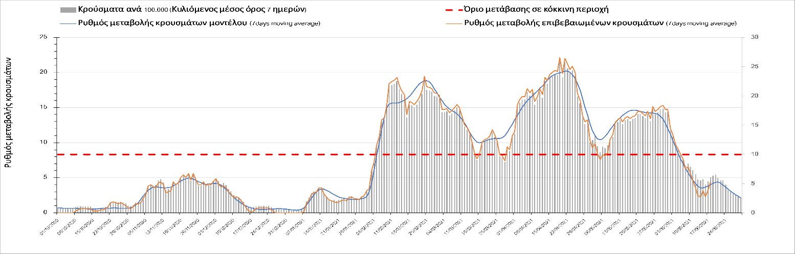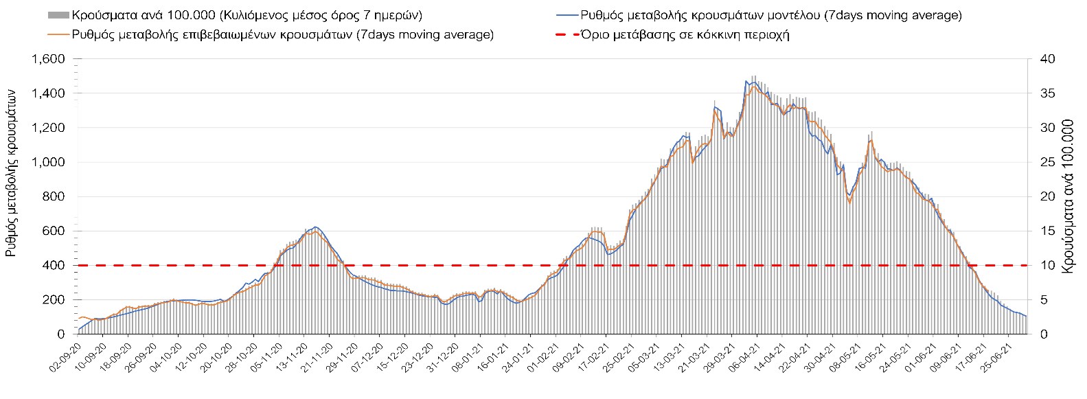 Το enikos.gr καθημερινά, μετά τις ανακοινώσεις του ΕΟΔΥ για τον κορονοϊό παρουσιάζει την ποσοτική ανάλυση των επιδημιολογικών δεδομένων, σε συνεργασία με την ομάδα του Δημοσθένη Σαρηγιάννη, διευθυντή του Εργαστηρίου Περιβαλλοντικής Μηχανικής του Αριστοτελείου Πανεπιστημίου Θεσσαλονίκης και διευθυντή της Ερευνητικής Ομάδας HERACLES για το Εκθεσίωμα και την Ανθρώπινη Υγεία του Κέντρου Διεπιστημονικής Έρευνας και Καινοτομίας του ΑΠΘ. Σύμφωνα με την εκτίμηση του, η Αττική είναι στο όριο ώστε να πέσει ο εβδομαδιαίος μέσος όρος κάτω από τα 10 κρούσματα ανά 100.000 κατοίκους.