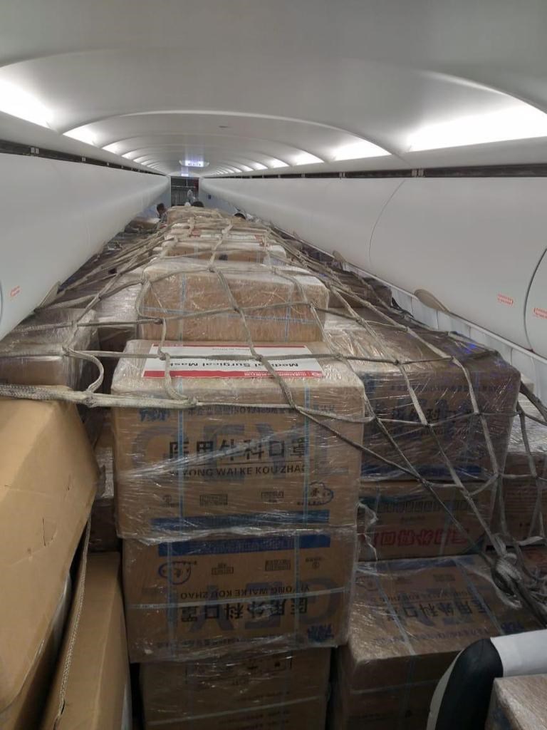 Ειδικά διαμορφωμένο αεροσκάφος της Aegean, το οποίο μετέφερε από την Κίνα μεγάλη ποσότητα υγειονομικού υλικού, 1,7 εκατομμύρια μάσκες, δωρεά του Ιδρύματος Ωνάση και Ελλήνων Εφοπλιστών, προσγειώθηκε τα ξημερώματα στο αεροδρόμιο “Ελευθέριος Βενιζέλος”. Με σειρά πτήσεων που αναμένεται να ολοκληρωθούν μέσα στην εβδομάδα, σύμφωνα με κυβερνητική ενημέρωση, έχει προγραμματιστεί να φτάσουν στη χώρα μας πάνω από 13 εκατομμύρια απλές χειρουργικές μάσκες και υλικά ατομικής προστασίας, όπως εξειδικευμένες μάσκες, στολές και ασπίδες προσώπου. Πρόκειται για τη μεγαλύτερη ως τώρα μεταφορά υγειονομικού υλικού από την Ελλάδα που προέρχεται από δωρεές.