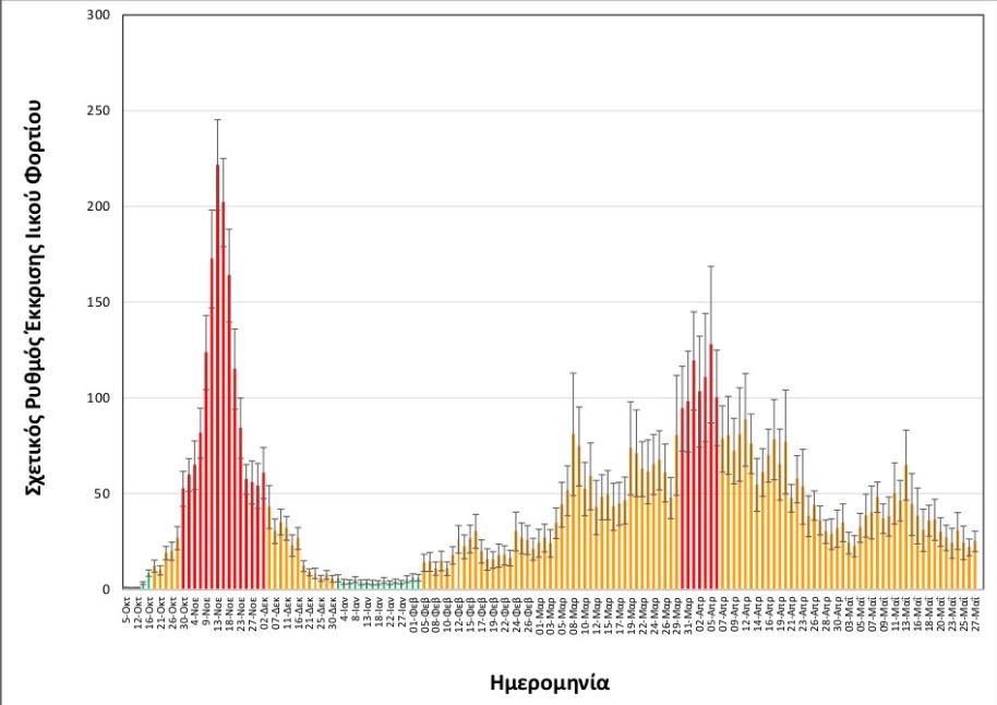 Έπειτα από μία μικρή αποκλιμάκωση που καταγράφηκε έως τις αρχές της προηγούμενης εβδομάδας, η τάση από τις 19 Μαΐου έως και την πιο πρόσφατη μέτρηση της 27ης Μαΐου, είναι σταθεροποιητική, όπως φαίνεται και από τα διαγράμματα του ΑΠΕ.