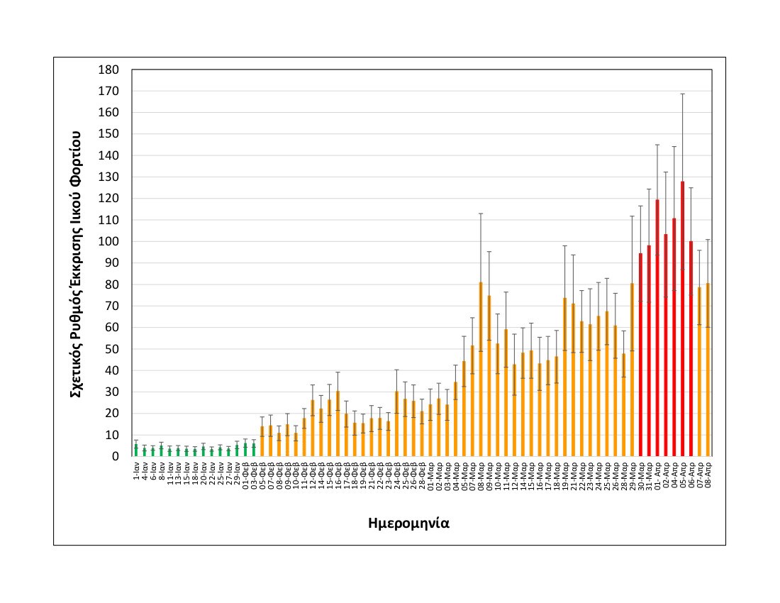 – Μειωμένη κατά 30% σε σχέση με τη μέση τιμή των δύο αμέσως προηγούμενων μετρήσεων, δηλαδή της Δευτέρας 05/04 και της Τρίτης 06/04.
