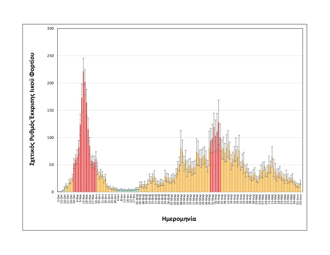 -Οριακά σταθερή (+10%)σε σχέση με τη μέση τιμή των δύο αμέσως προηγούμενων μετρήσεων της Δευτέρας 31/05 και της Τρίτης 01/06.